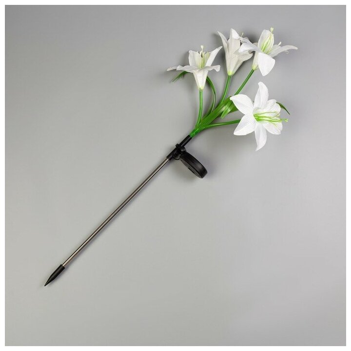 Купить Садовый светильник на солнечной батарее «Лилия белая», 80 см, 4 LED, свечение мульти (RGB)