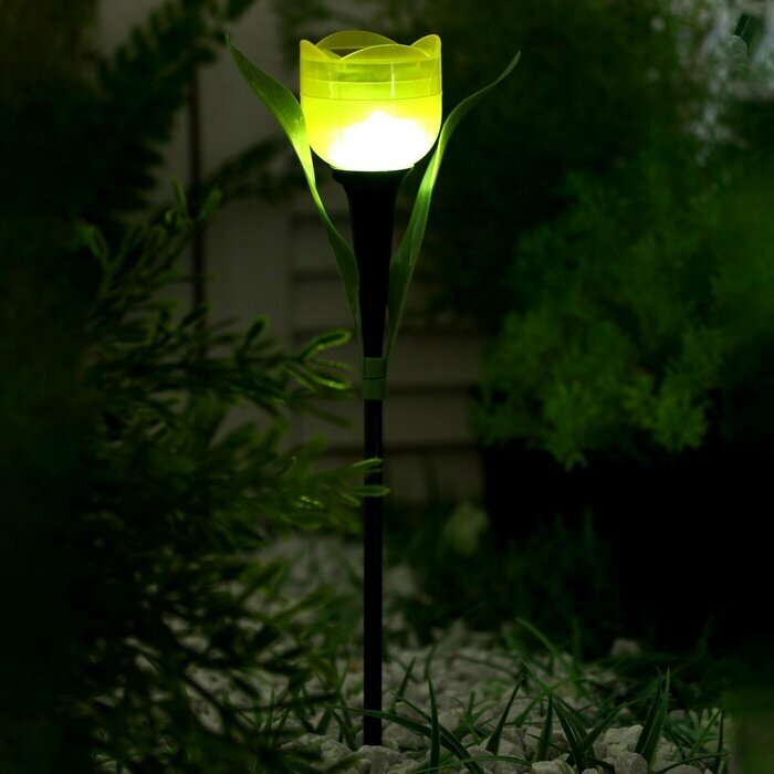Купить Садовый светильник на солнечной батарее «Тюльпан жёлтый», 5×29×4 см, 1 LED, свечение белое