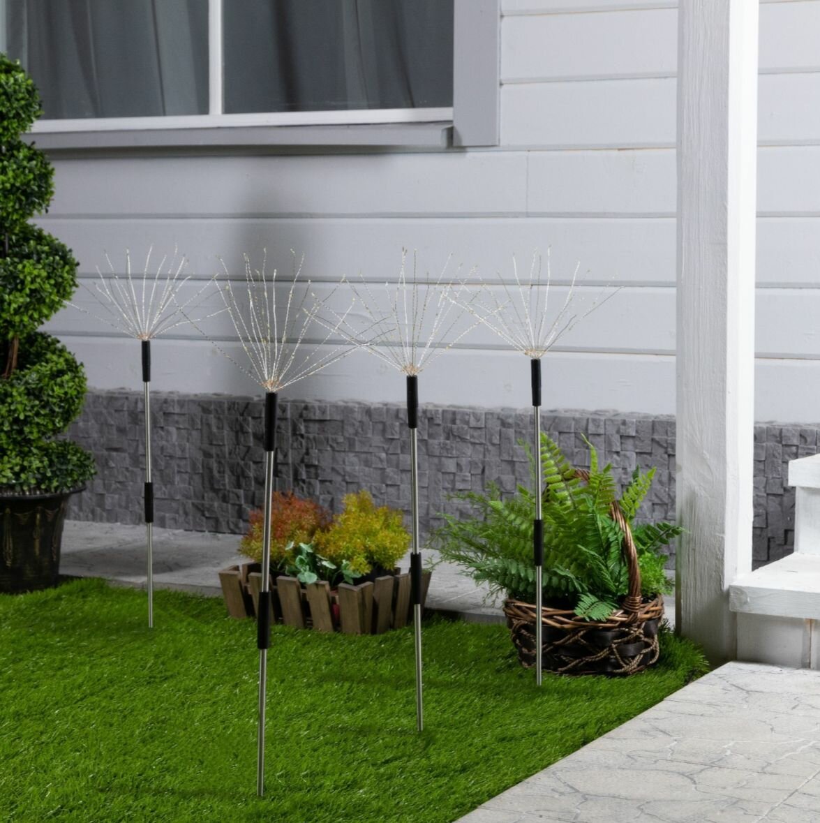 Купить Садовый светильник на солнечной батарее Одуванчики 4 шт, 78 см, 160 LED, свечение белое