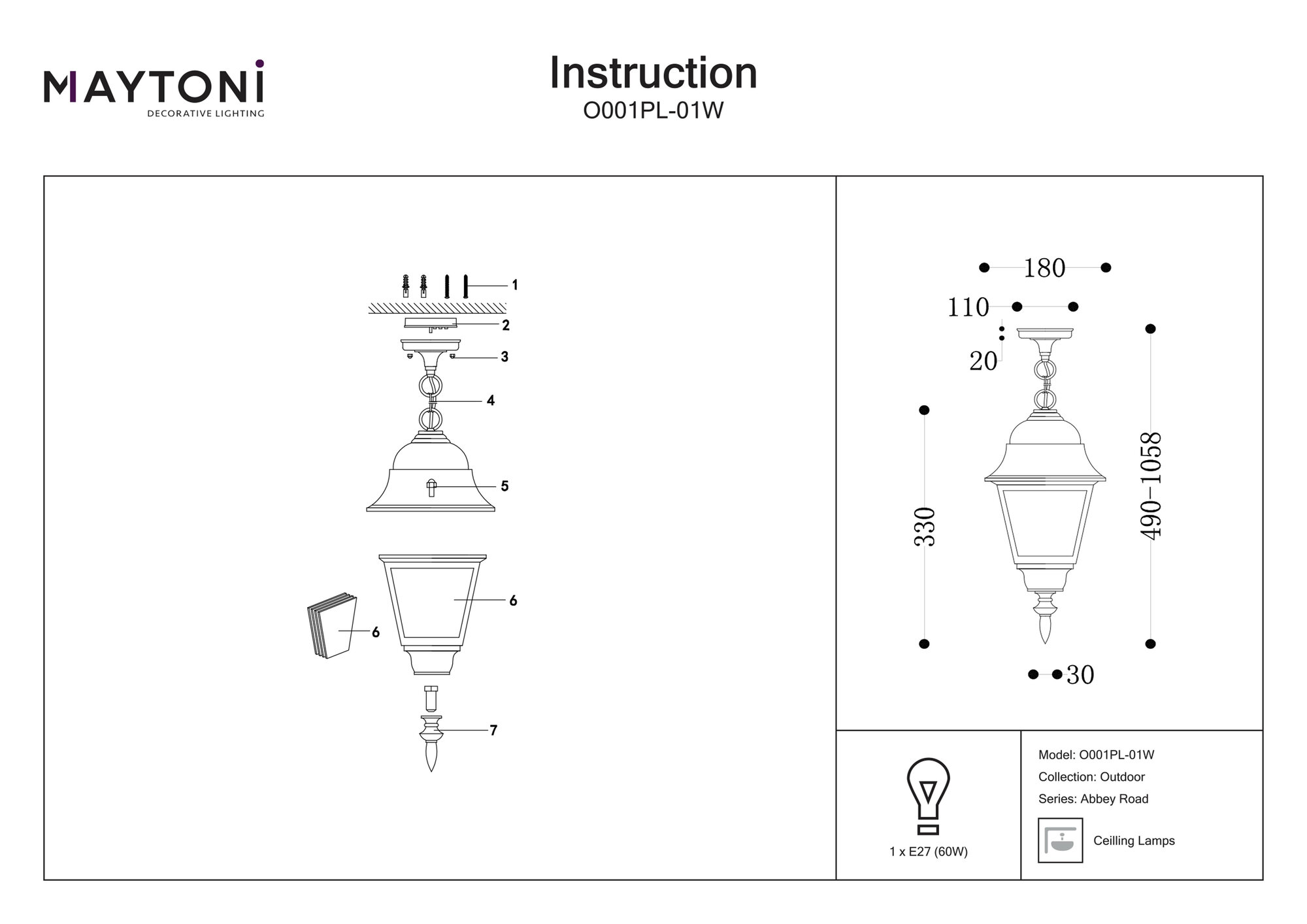 Купить Подвесной светильник Maytoni Abbey O001PL-01W Цвет арматуры белый Цвет плафонов прозрачный