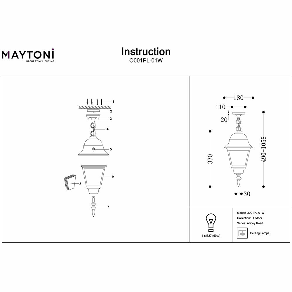 Подвесной светильник Maytoni Abbey O001PL-01W Цвет арматуры белый Цвет плафонов прозрачный интересное: