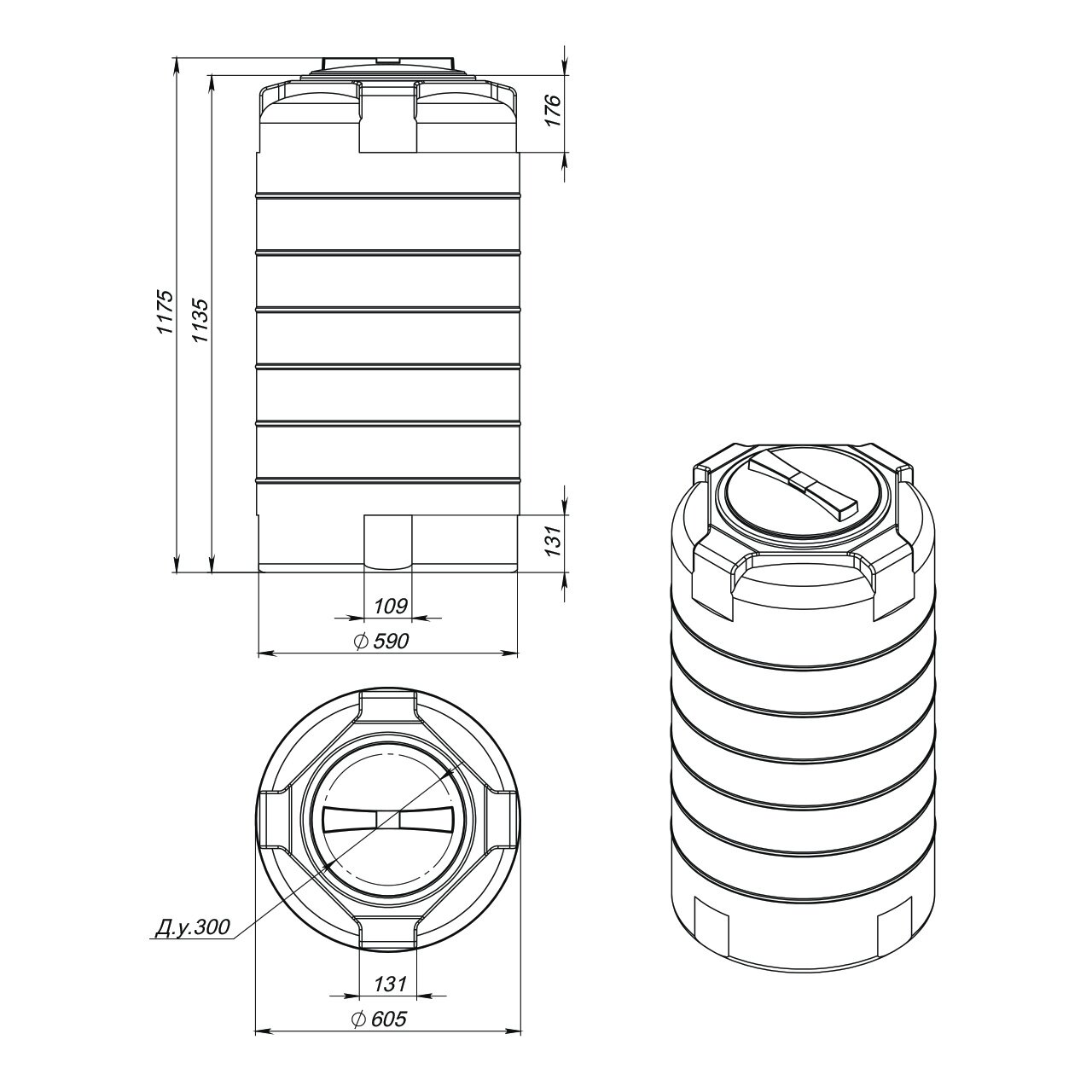 Емкость 300 л. литров для питьевой воды пластиковая / пищевой полиэтилен / садовая бочка, бак для полива, топлива, сыпучих, душа 200, 227, 250 интересное: