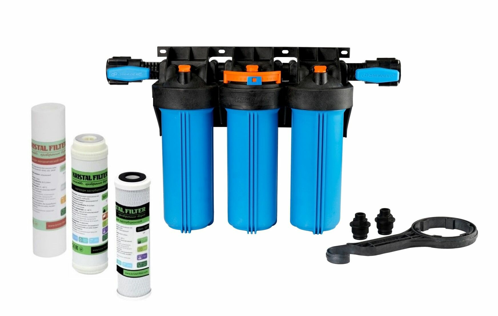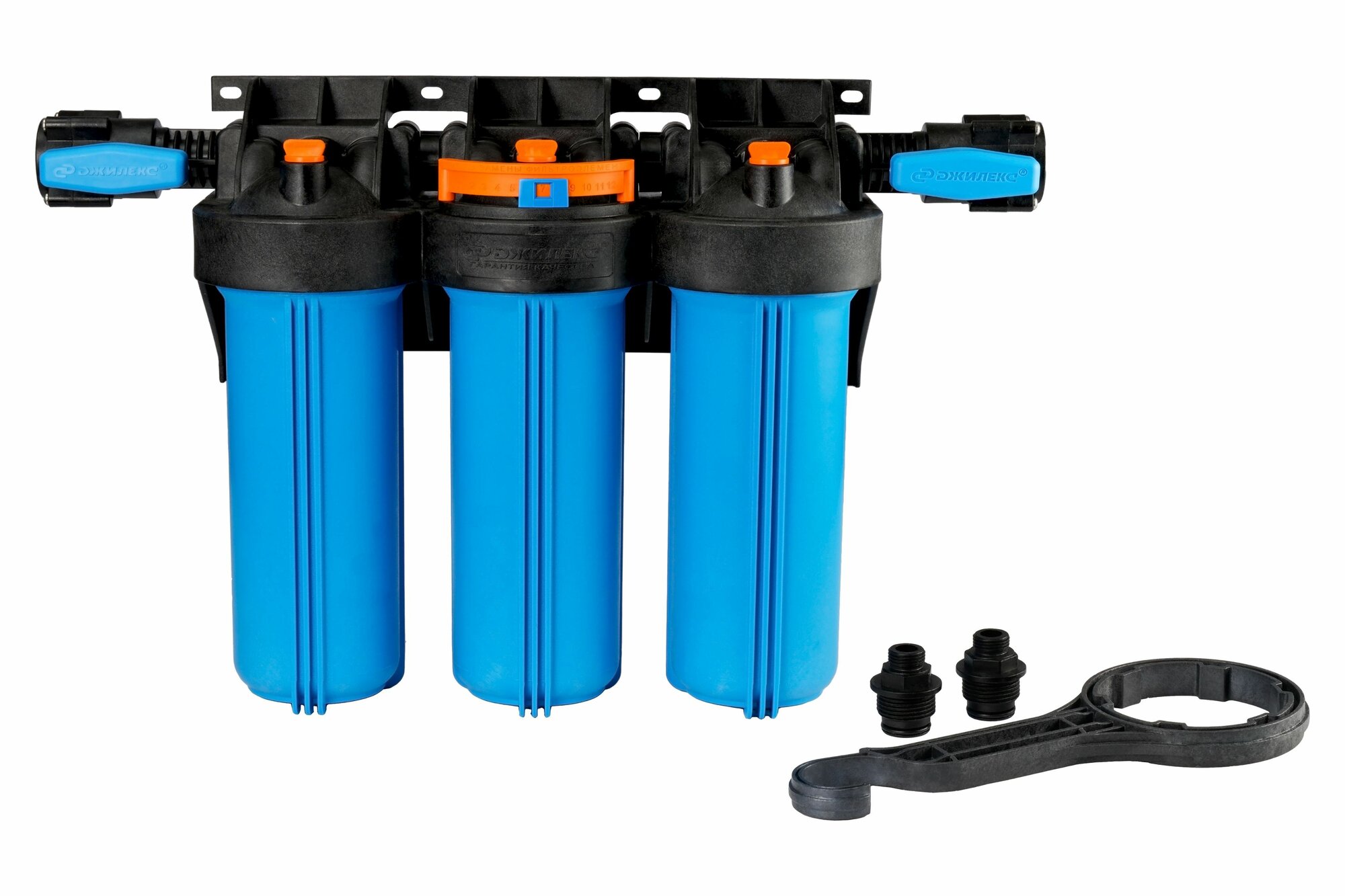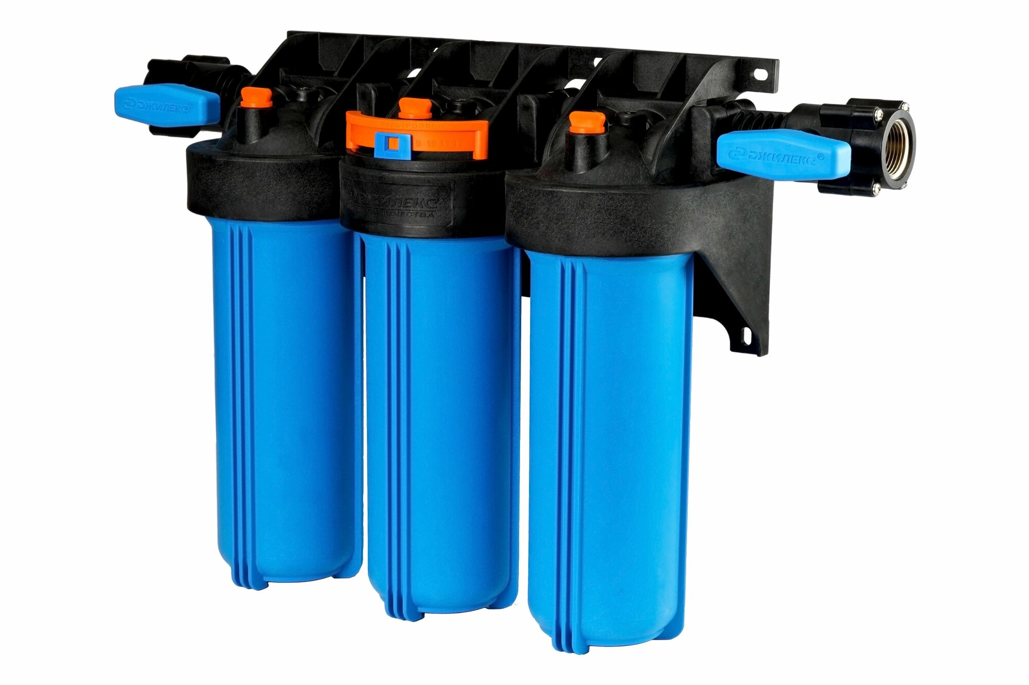 Купить Фильтр для очистки воды от механических загрязнений тройной SLIM 1M-T3 (три ступени очистки, размер SLIM, три картриджа в комплекте)