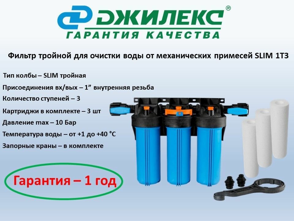 Фильтр для очистки воды от механических загрязнений тройной SLIM 1M-T3 (три ступени очистки, размер SLIM, три картриджа в комплекте) интересное:
