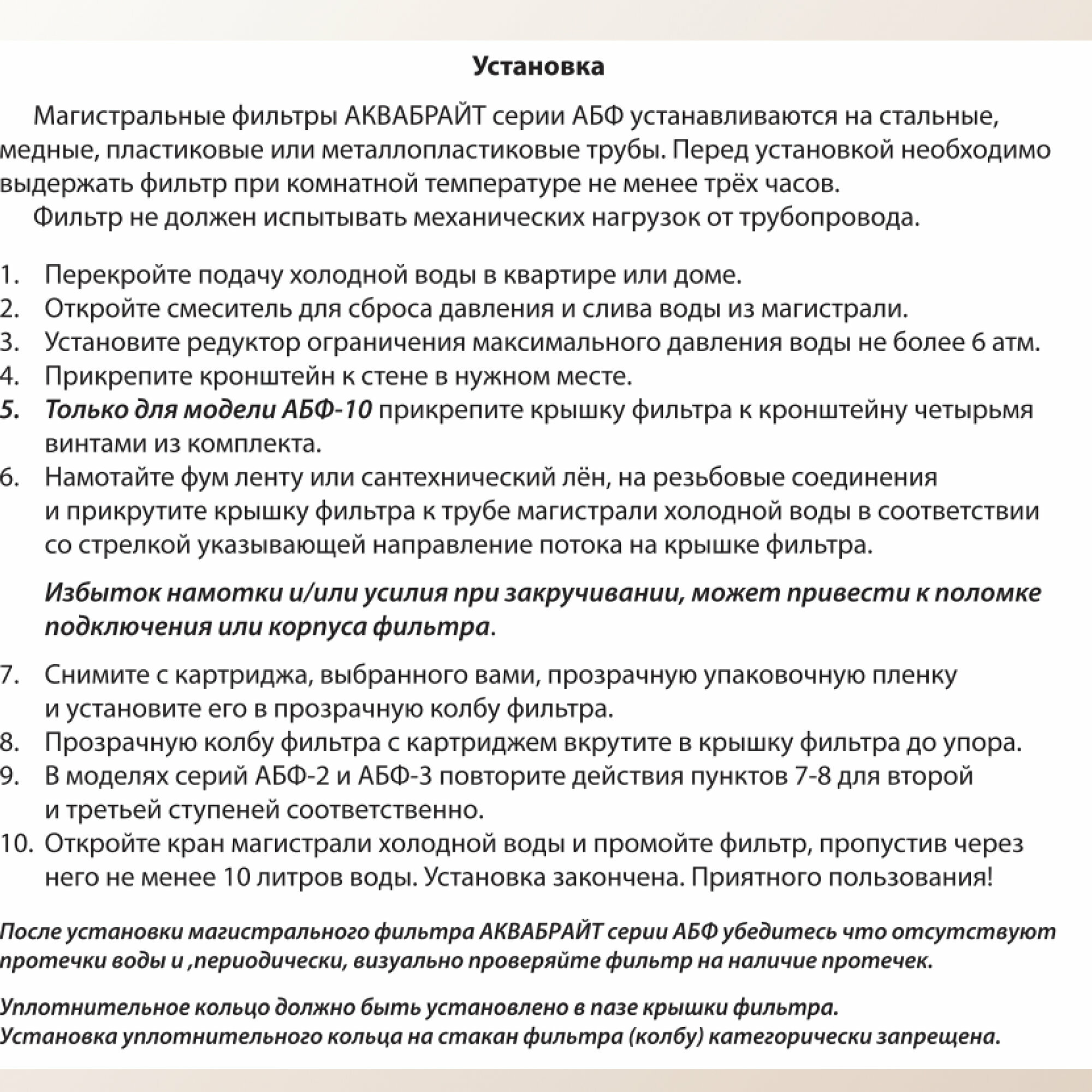 Фильтр магистральный Аквабрайт АБФ-10-12 для холодной воды (1/2") интересное:
