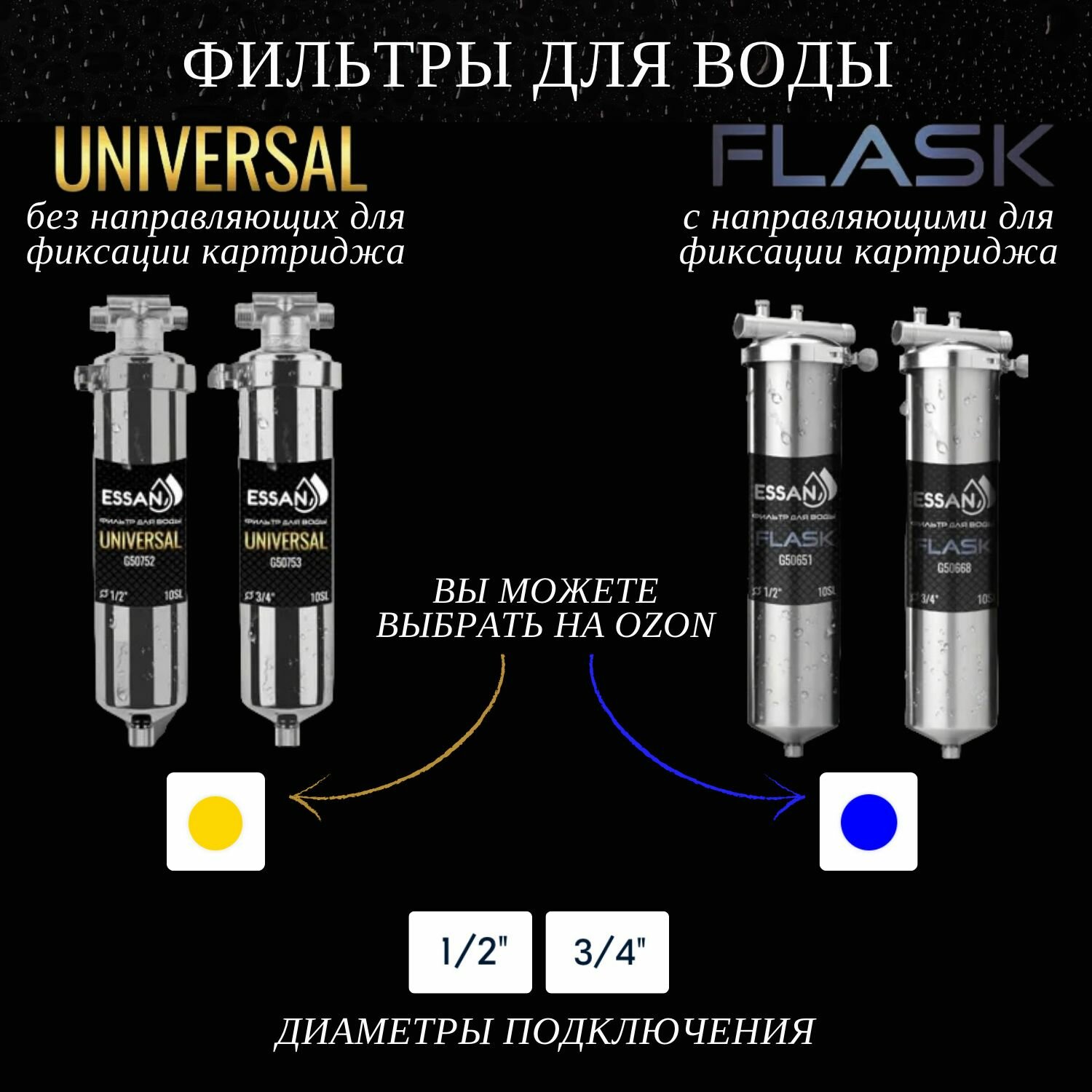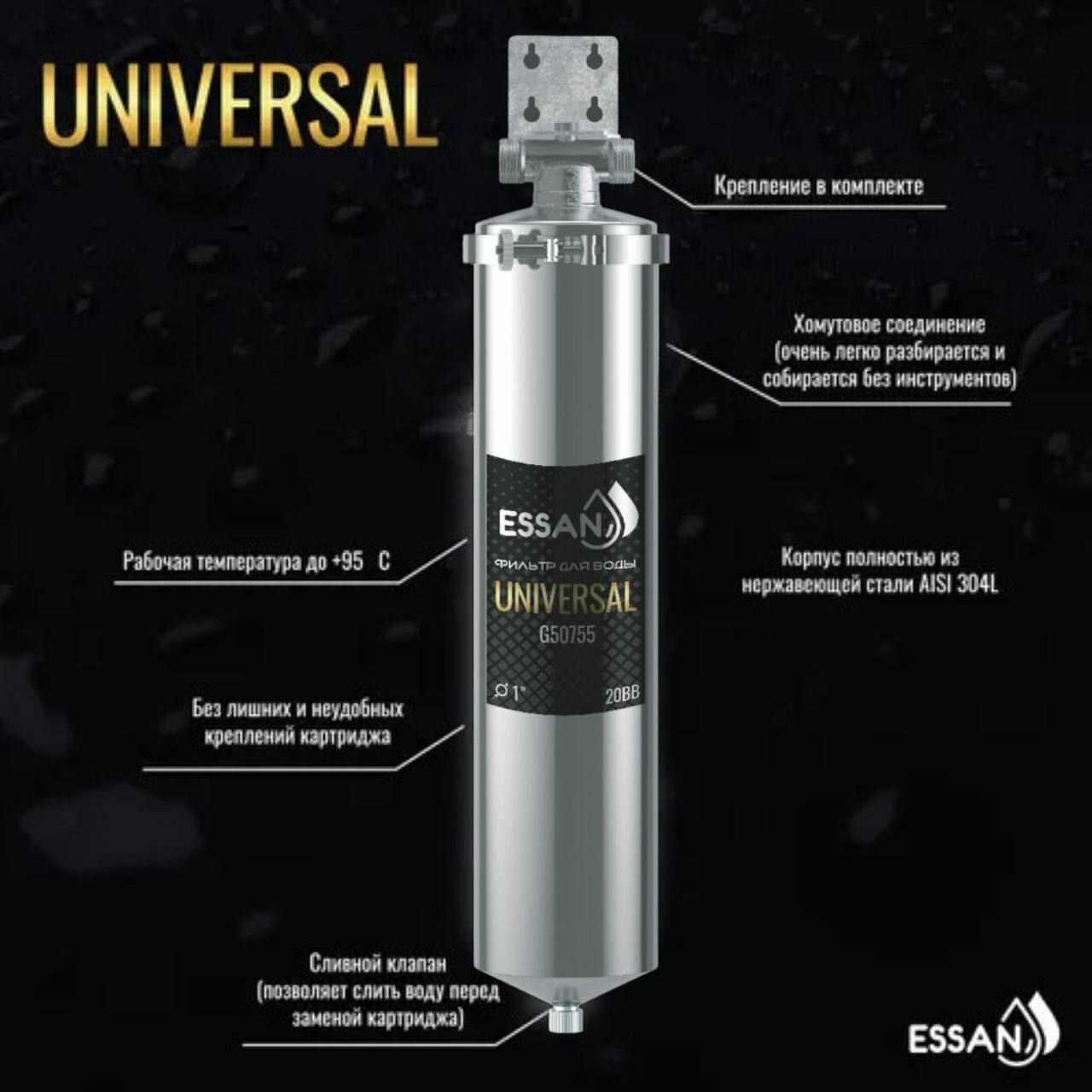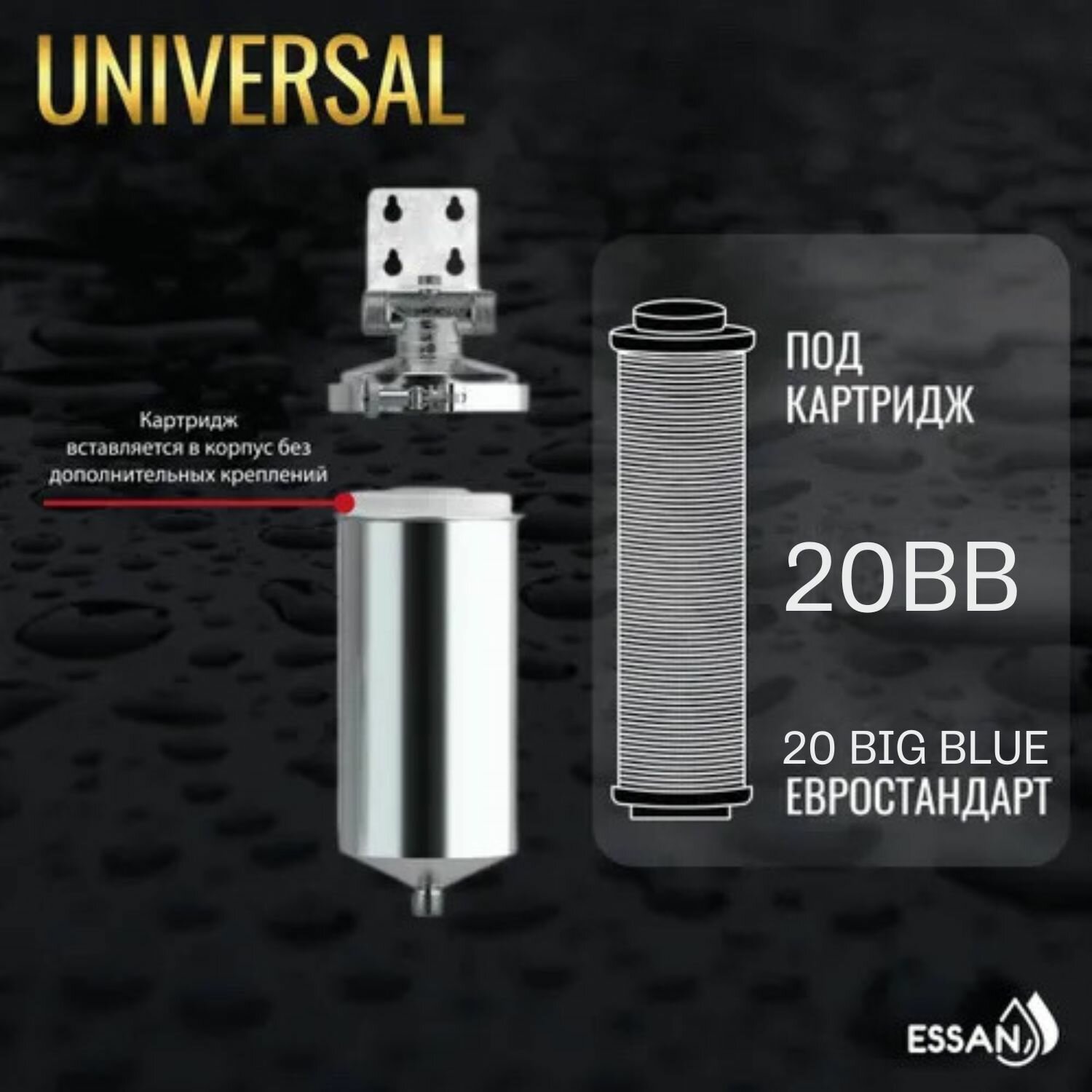 Фильтр колба проточная для магистрального водоснабжения ESSAN UNIVERSAL 20BB 1 H Big Blue Корпус для фильтра производства Италия, 50755 интересное: