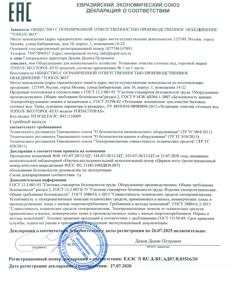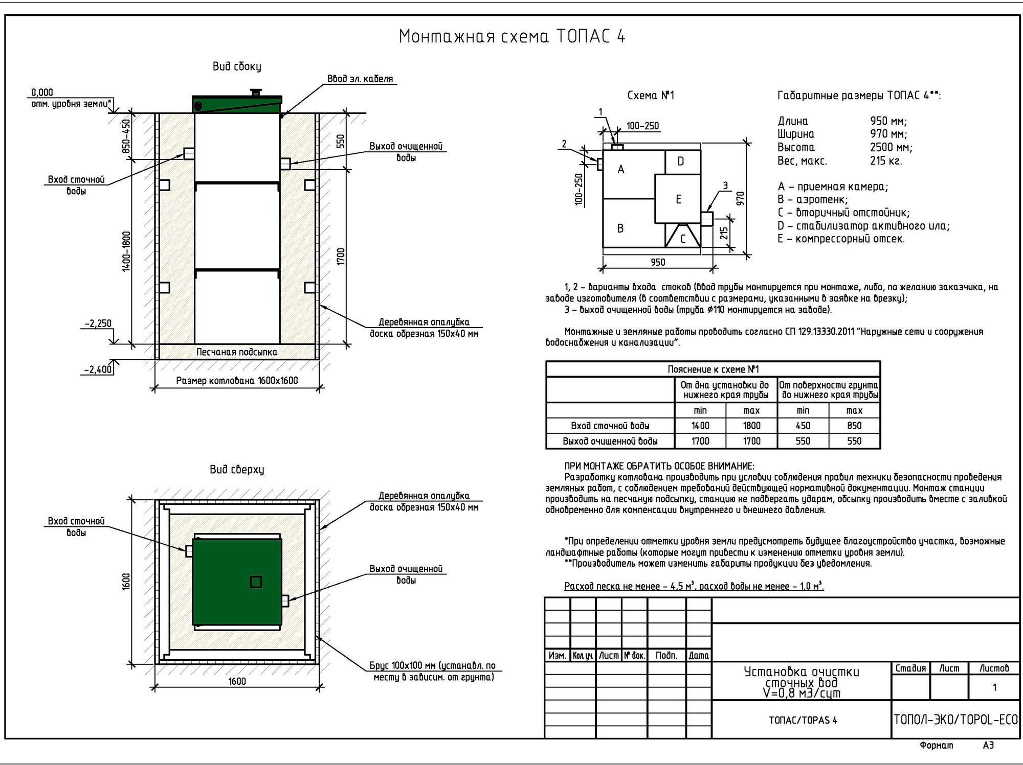 Топас 4ПР - септик для 4-х пользователей, 175 литров залпового сброса, принудительный сброс интересное: