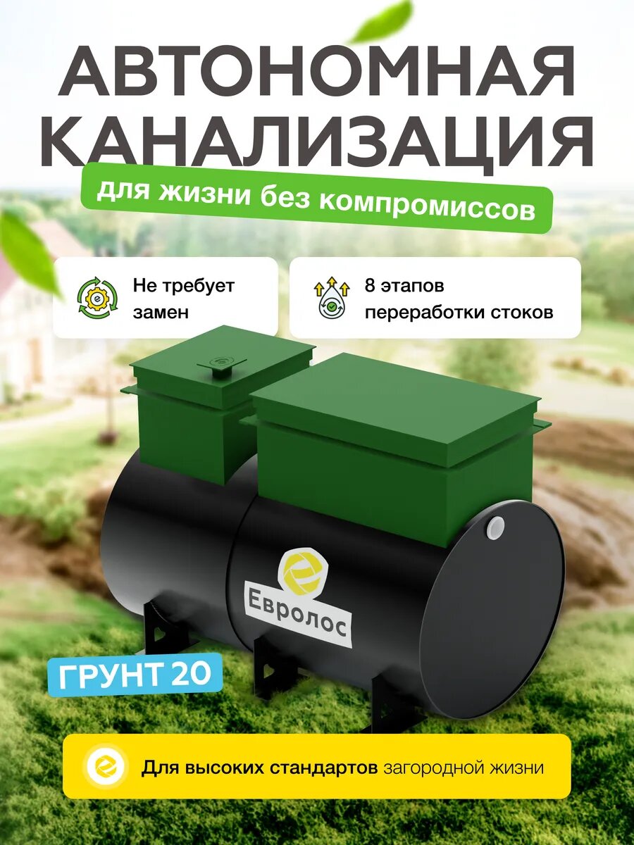 Купить Септик для частного дома Евролос Грунт 20 "Самотечная"