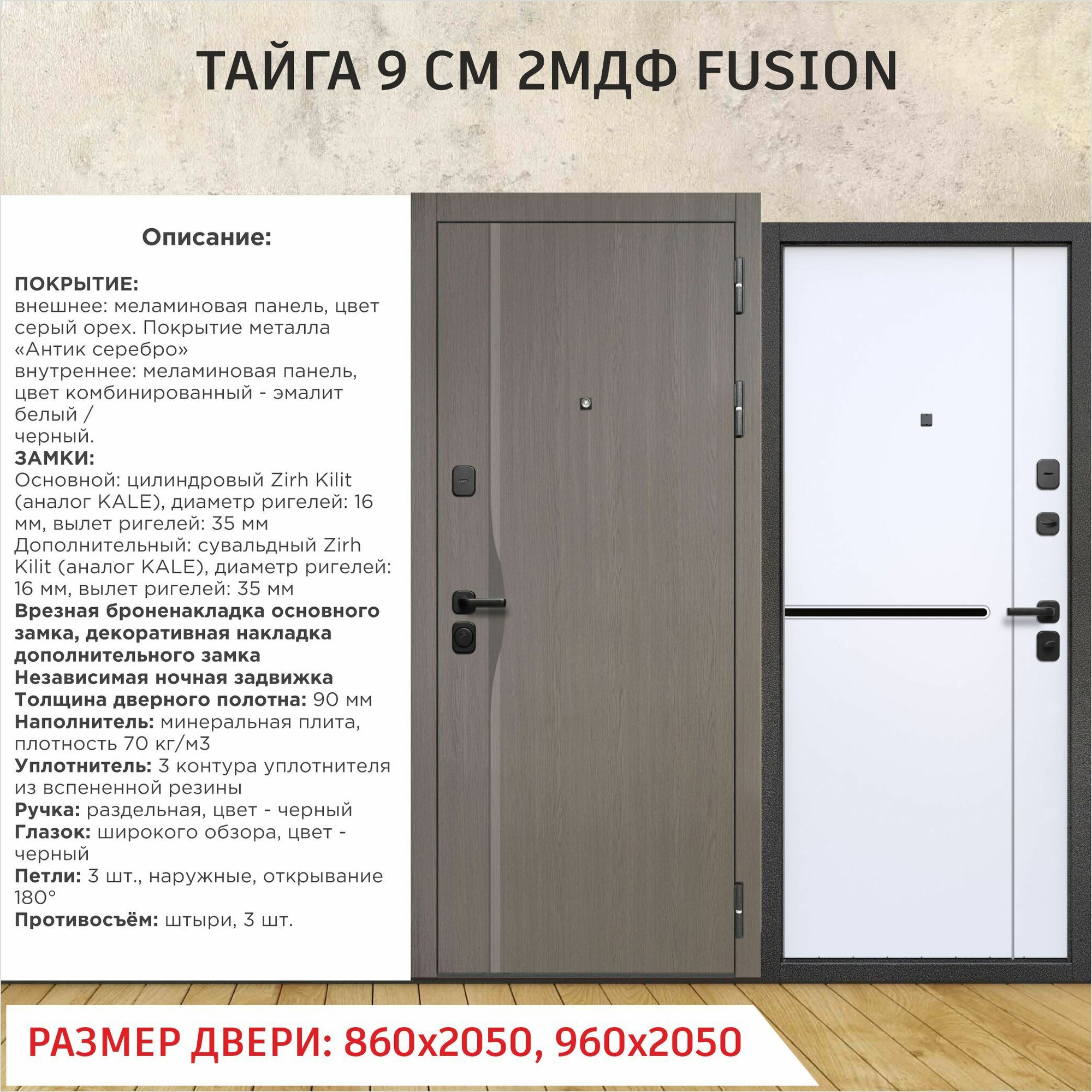 Дверь входная металлическая Тайга 9 см Fusion Эмалит белый 2МДФ 2050х960 Правая интересное: