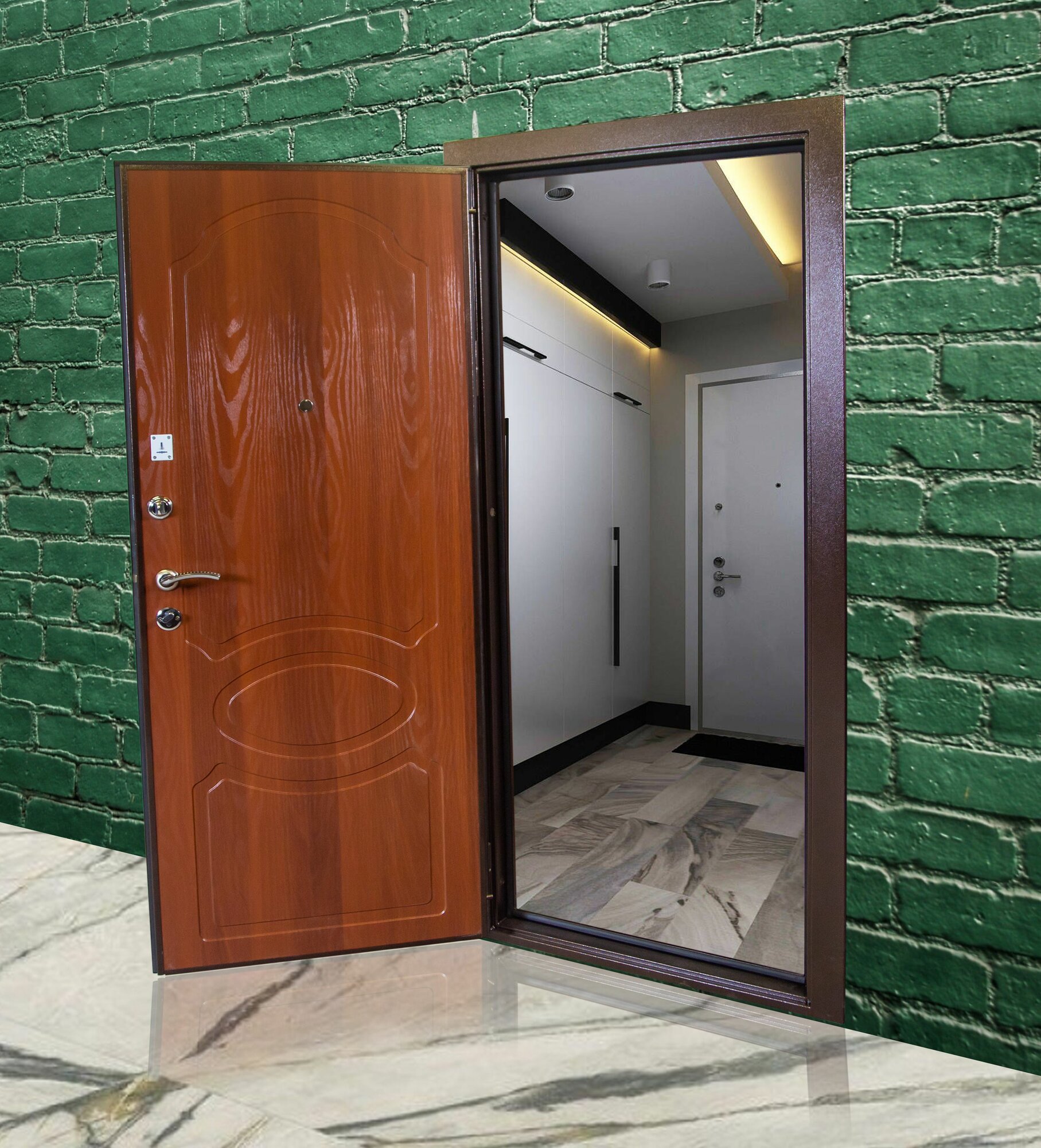 Дверь входная DOORBET "Классика" левое Антик медь/МДФ Итальянский Орех 2050*860