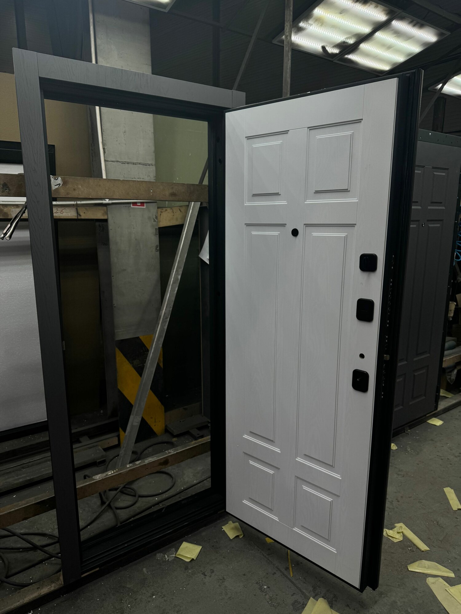Дверь входная мегатрон WOOD 1 Ясень Дип Графит - Белый снег 960 Левая интересное: