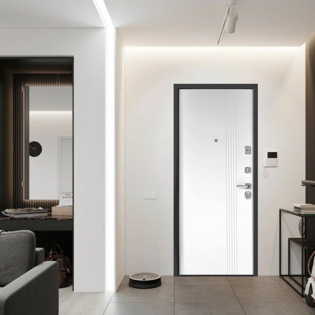 Входная дверь Labirint Лайн WHITE с зеркалом Фацет 960x2050, открывание левое