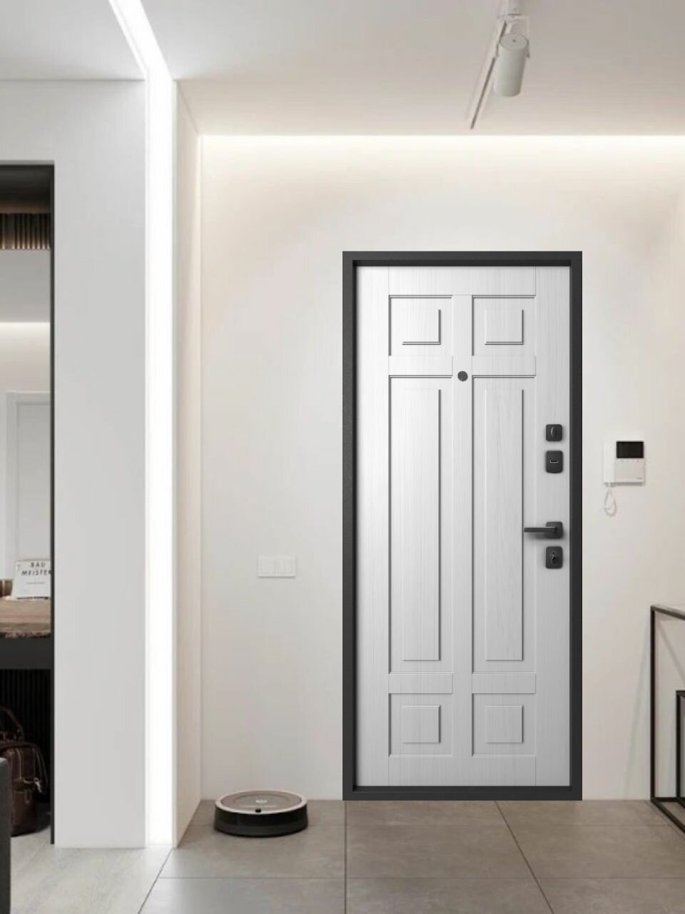 Входная дверь Labirint Лайн WHITE с зеркалом Фацет 960x2050, открывание левое