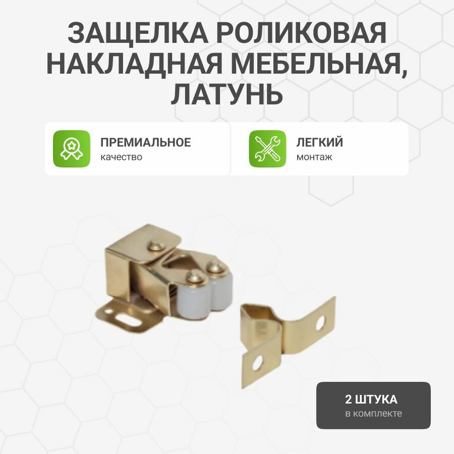 Защелка роликовая накладная мебельная, латунь, 2 шт интересное: