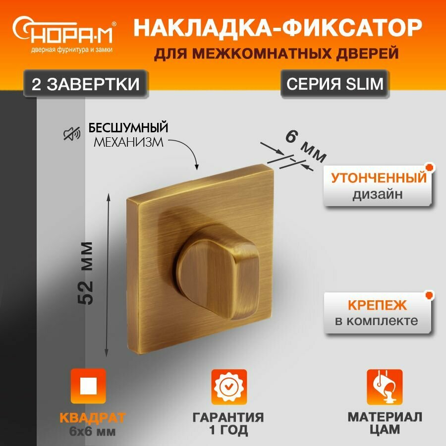 Завертка дверная межкомнатная до 42мм НОРА-М НФ-К Slim - Старая медь