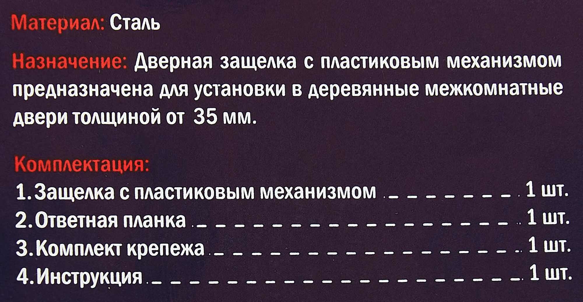 Шпингалет накладной белый, засов дверной, 100мм, комплект 3шт