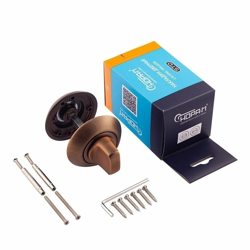 Завертка дверная фиксатор, комплект, Нора-М НФ-А, цвет - Старая медь