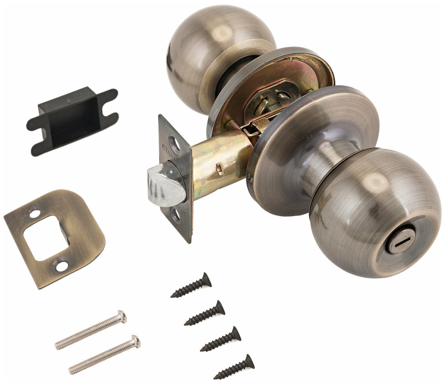 Ручка-защелка дверная межкомнатная (кноб) с фиксатором без ключей стандарт 607 BK AB бронза интересное:
