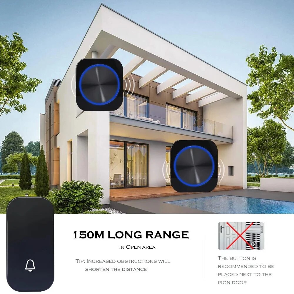SMATRUL Беспроводной водонепроницаемый дверной звонок 1 кнопка 1 приемник, 11EU интересное: