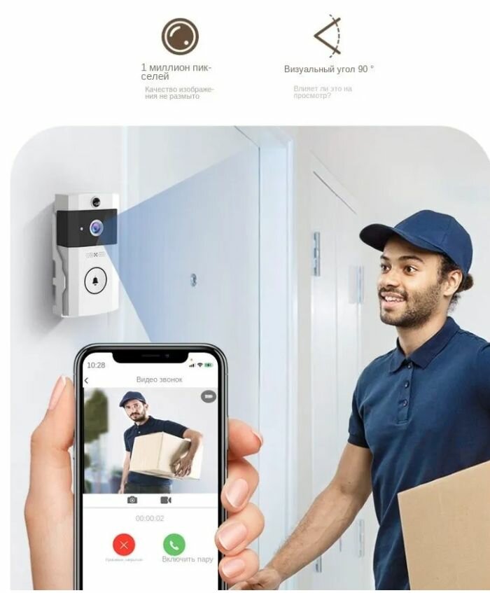 Звонок беспроводной дверной с камерой DECROSS U9 SMART, с датчиком движения интересное: