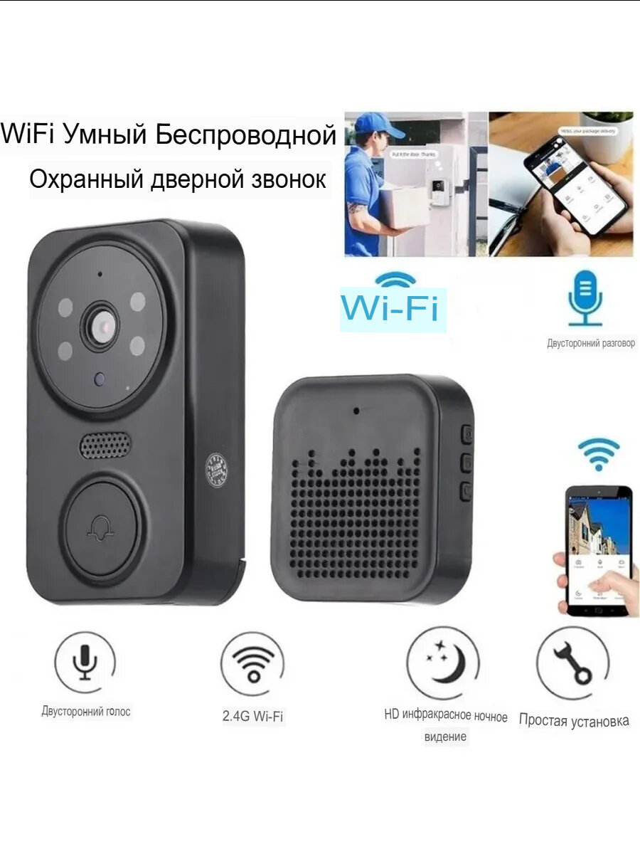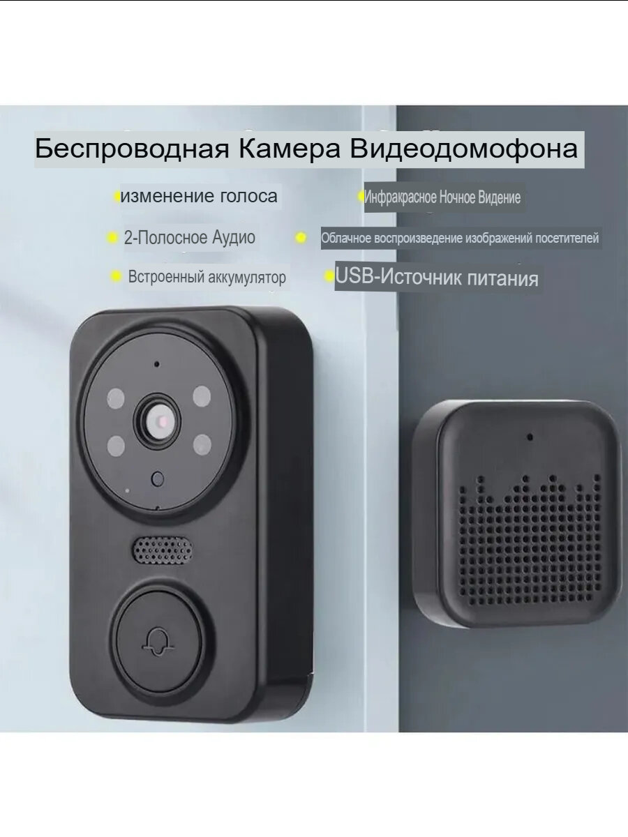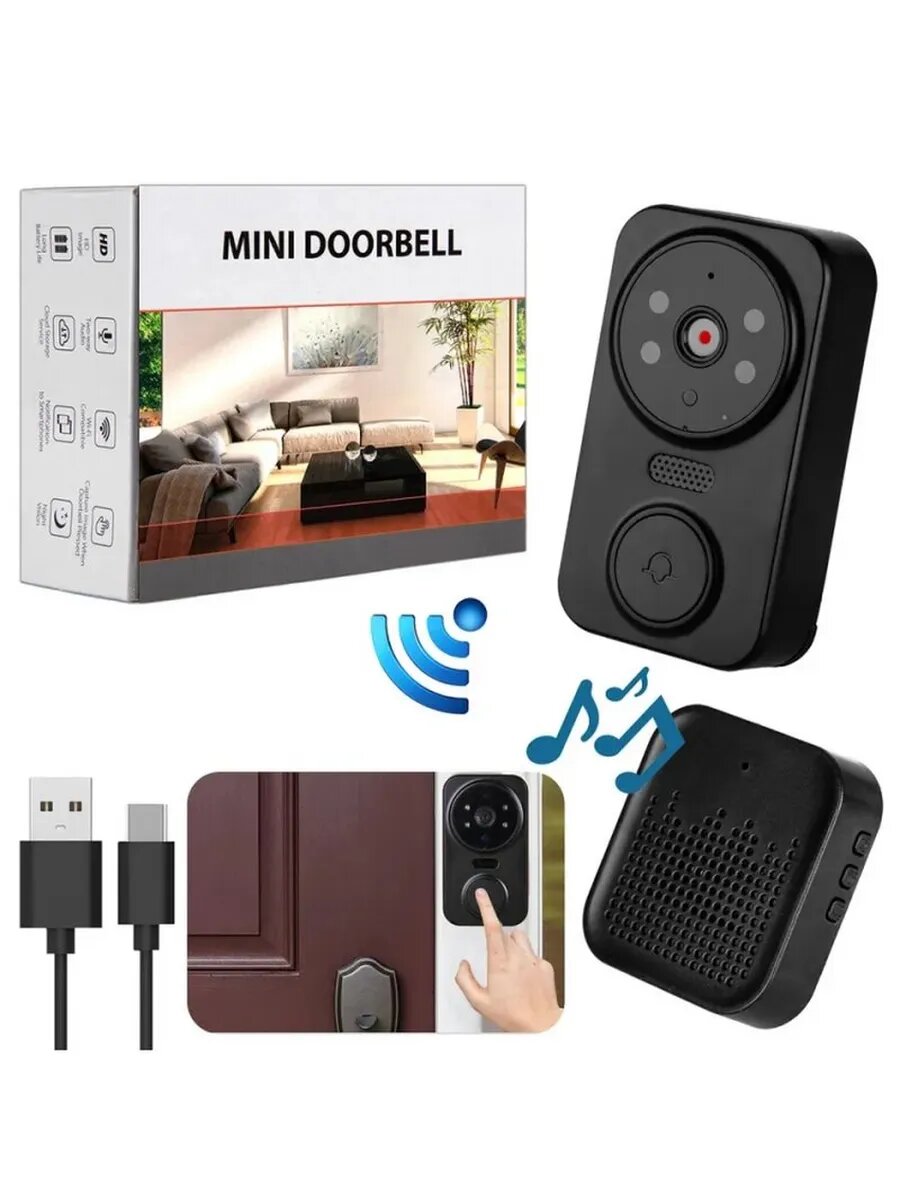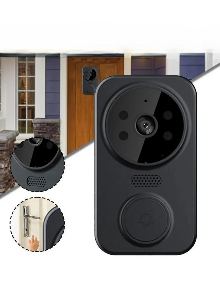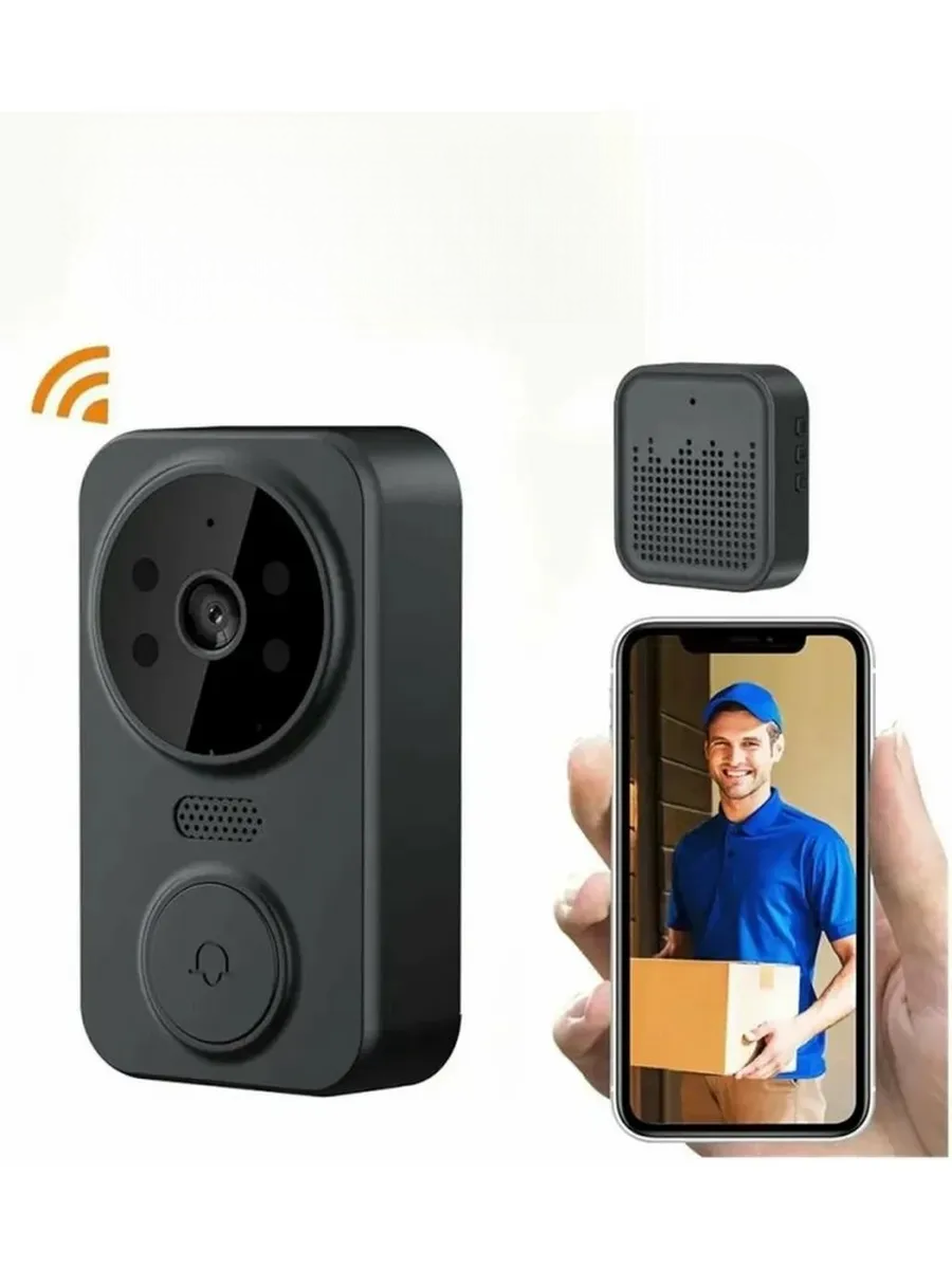 Беспроводной дверной звонок, с видеокамерой и микрофоном, влагозащищённый, черный интересное: