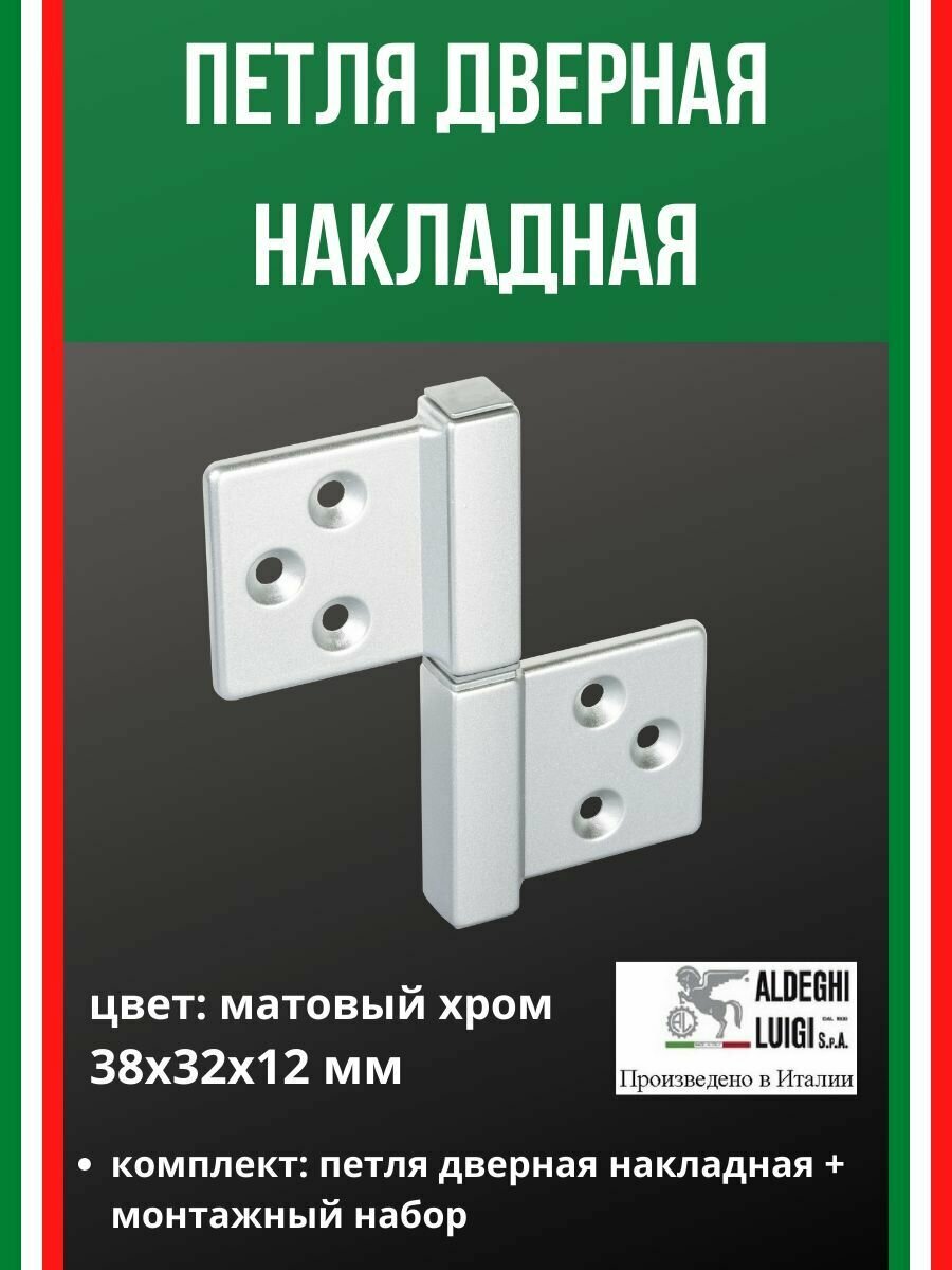 Петля дверная накладная ALDEGHI LUIGI SpA, унив, 38х32х12 мм, матовый хром + монтажный набор, 143CS032_Q интересное: