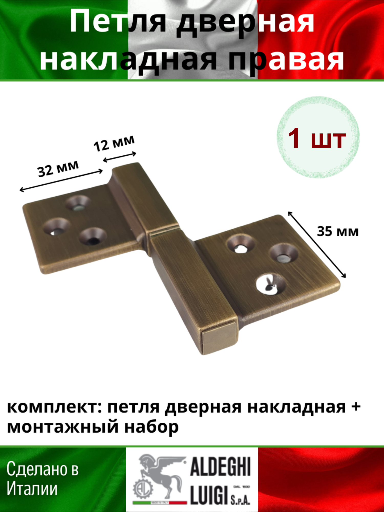 Петля дверная ALDEGHI LUIGI SpA, правая, 38х32х12 мм, цвет: матовая бронза + монтажный набор интересное: