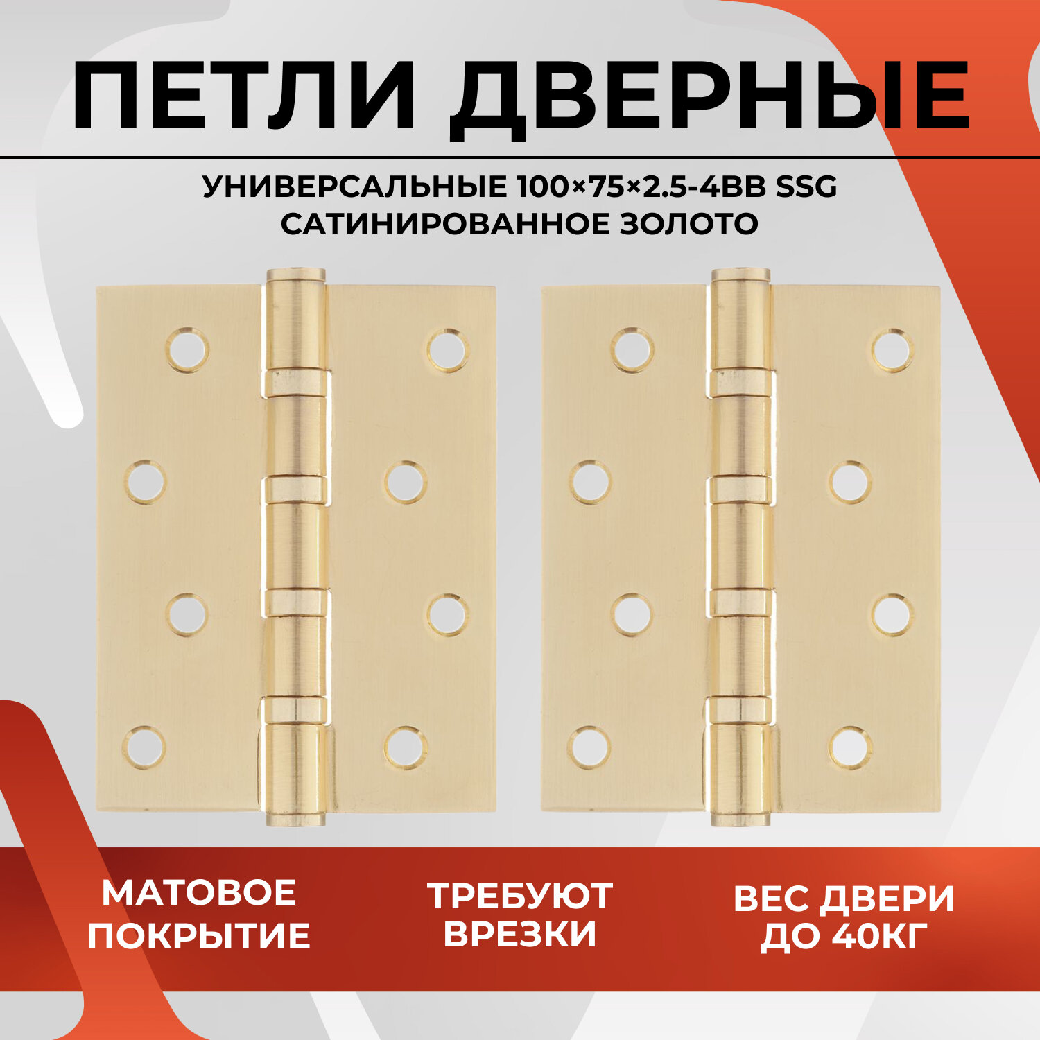 Сохранить20579 Дверная петля универсальная карточная VETTORE 100x75x2.5 - 4BB SSG Матовое золото, навес для двери до 40 кг интересное:
