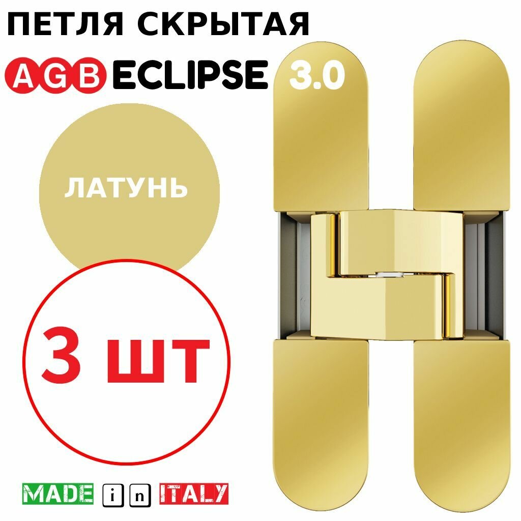Купить Петли скрытые AGB Eclipse 3.0 (латунь) Е30200.02.03 + накладки Е30200.12.03 (3шт)