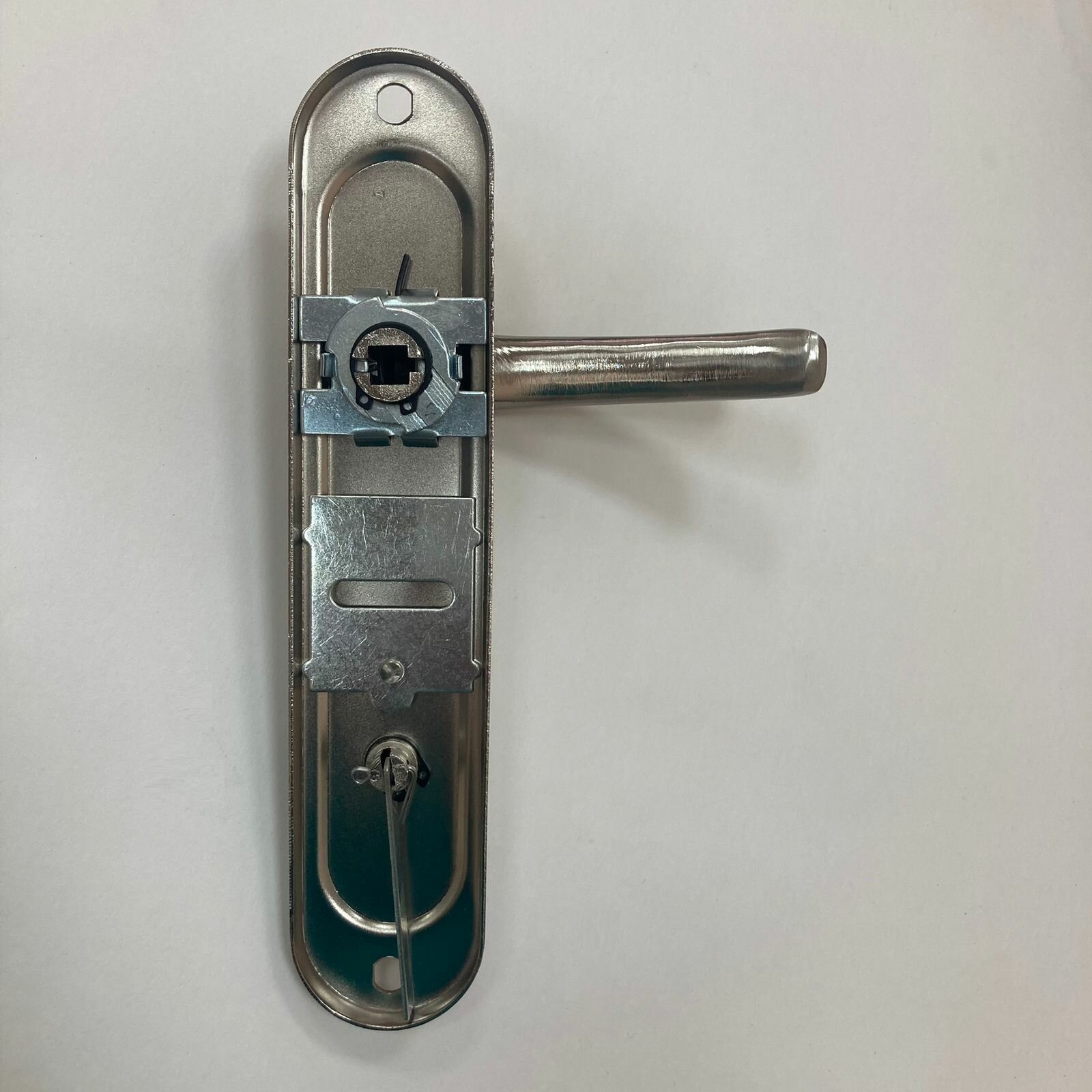 Ручки на планке левые серебро к замкам Эльбор 1.05.41 и 1.06.40/41