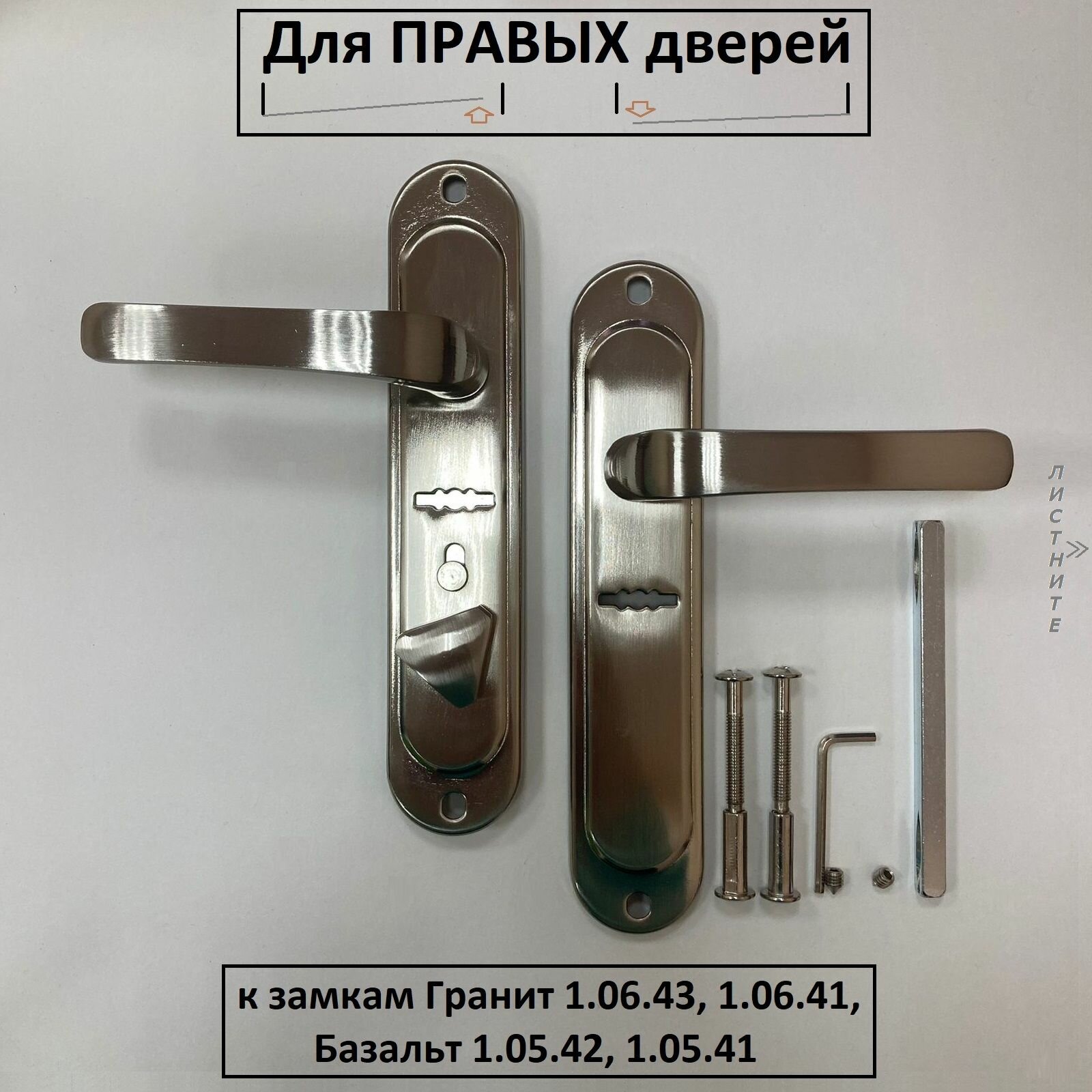 Ручки на планке правые серебро к замкам Эльбор 1.05.41 и 1.06.40/41