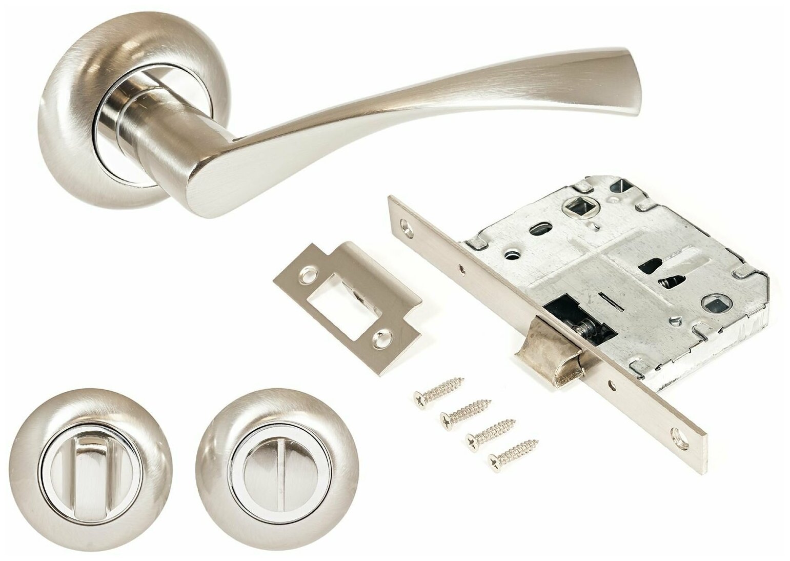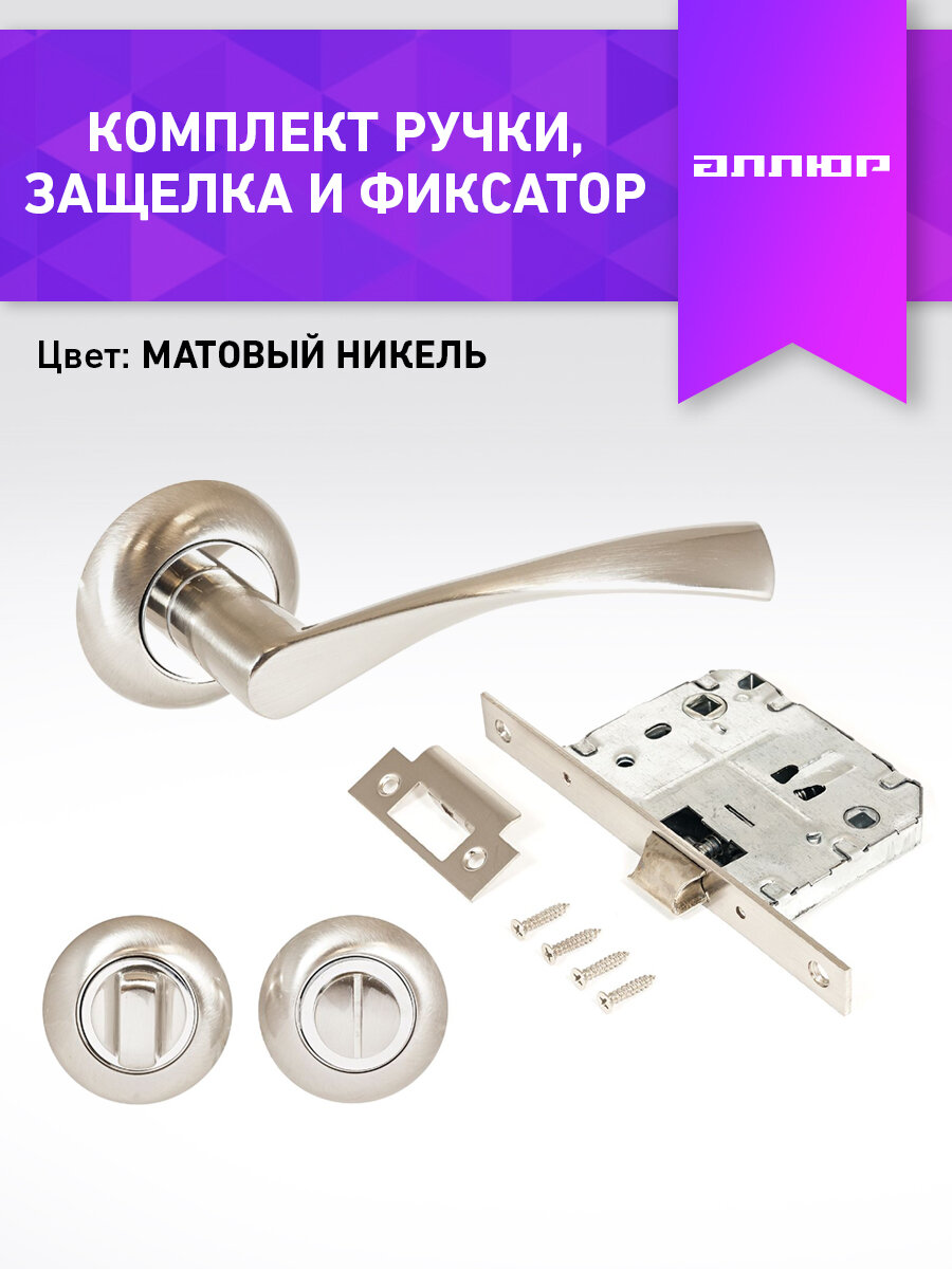 Комплект ручка дверная, защелка, поворотник аллюр АРТ "оскар" SN+L7050S SN+BK-R1 SN (1380/S7050), матовый никель интересное: