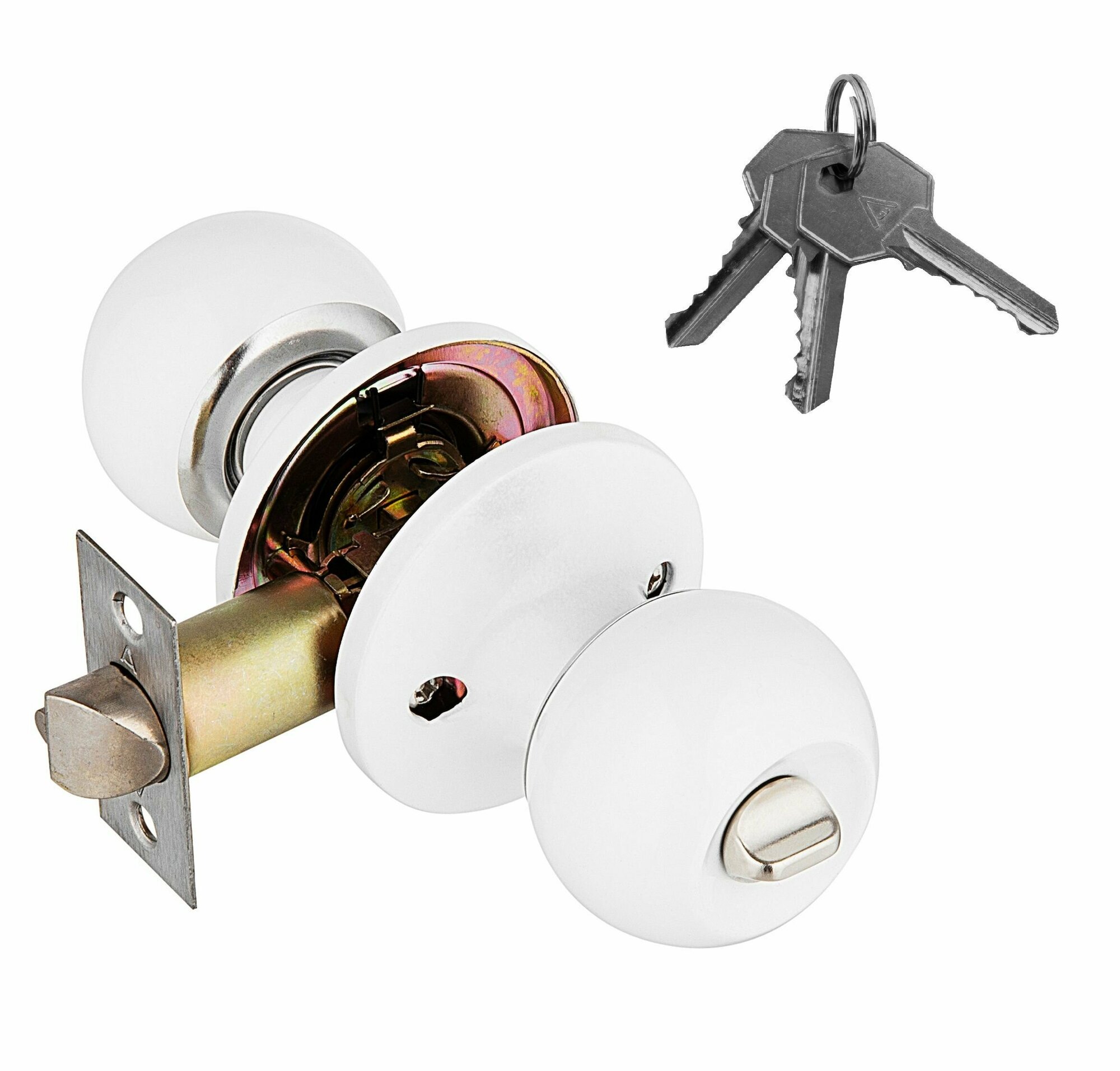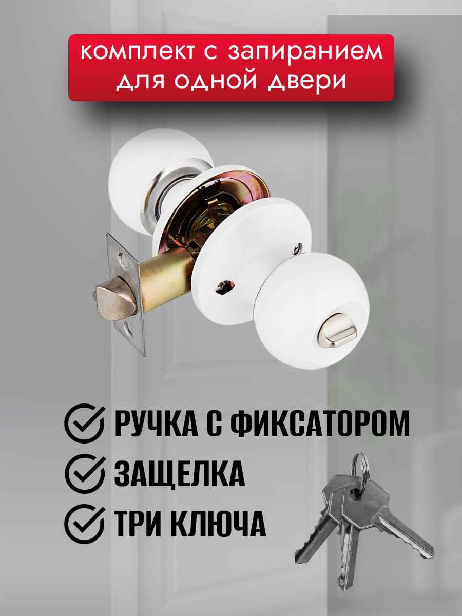 Купить Ручка дверная межкомнатная , сталь, с заверткой, защелкой, ключами, комплект