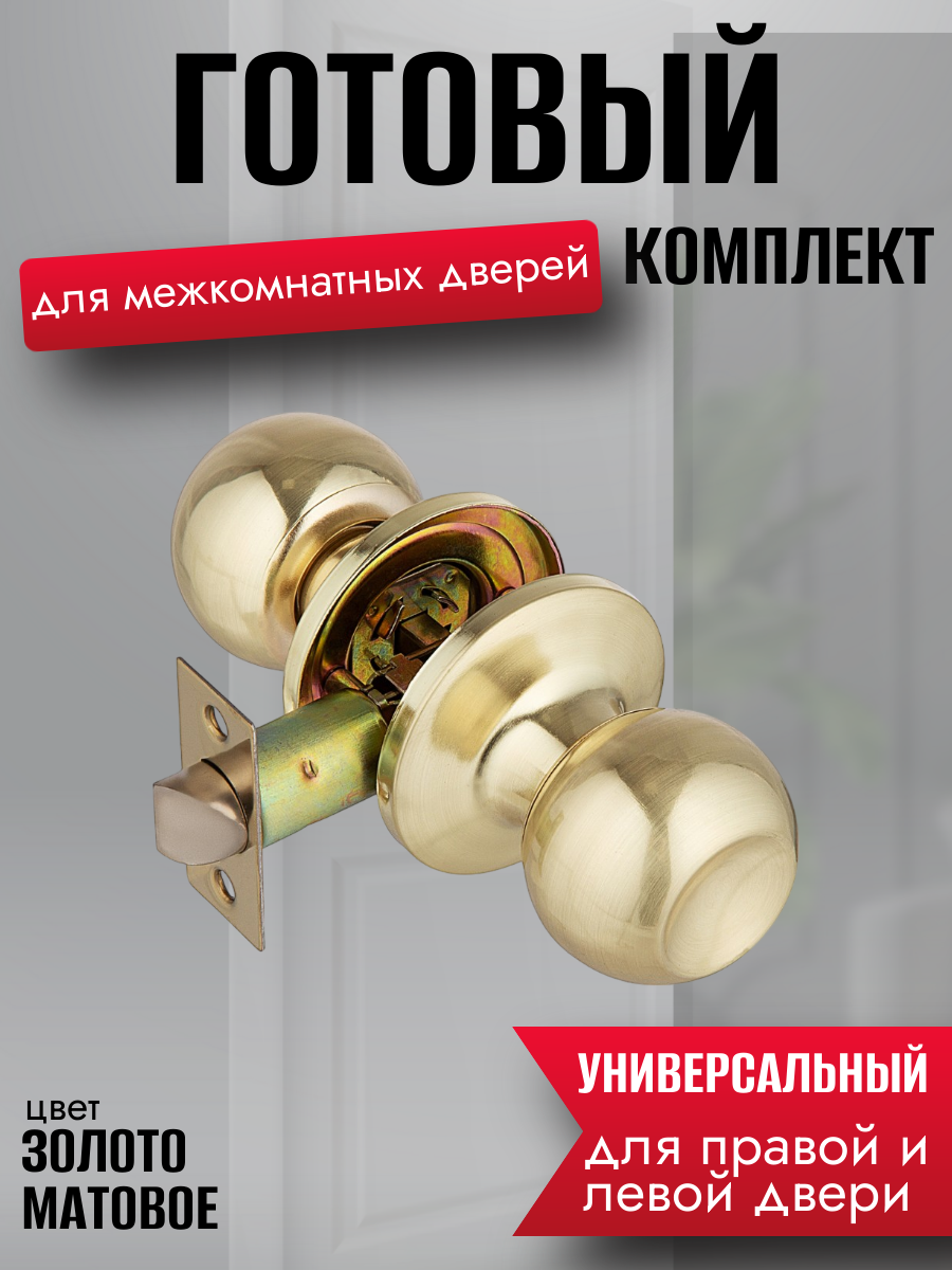 Ручка дверная межкомнатная кноб с защелкой и ключами золото матовое комплект 607 SB ET