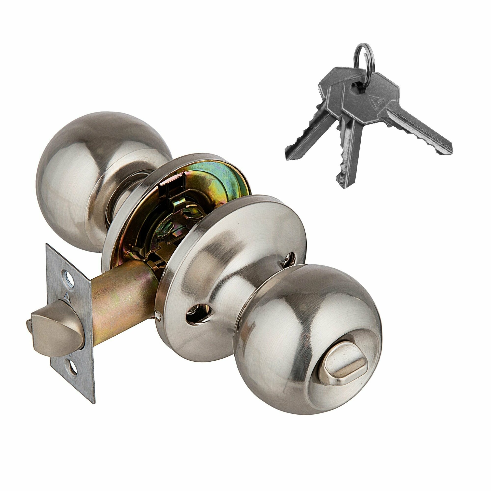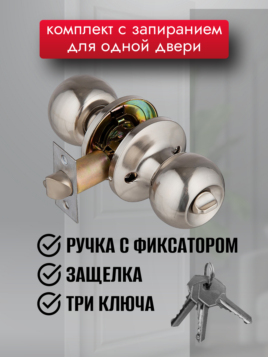 Купить Ручка дверная межкомнатная кноб с защелкой и ключами никель комплект 607 SN ET