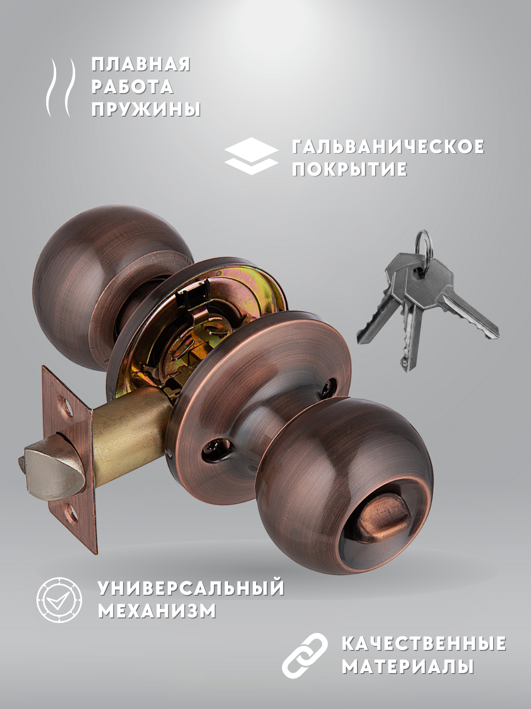 СохранитьРучка дверная межкомнатная кноб с защелкой и ключами медь комплек 607 AC ET интересное: