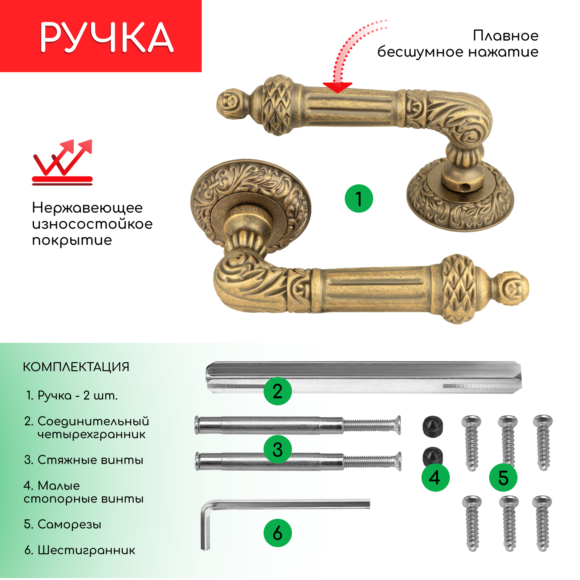 Комплект для межкомнатной двери Rucetti ручки RAP Cl 3 OMB + бесшумный замок / старая матовая бронза