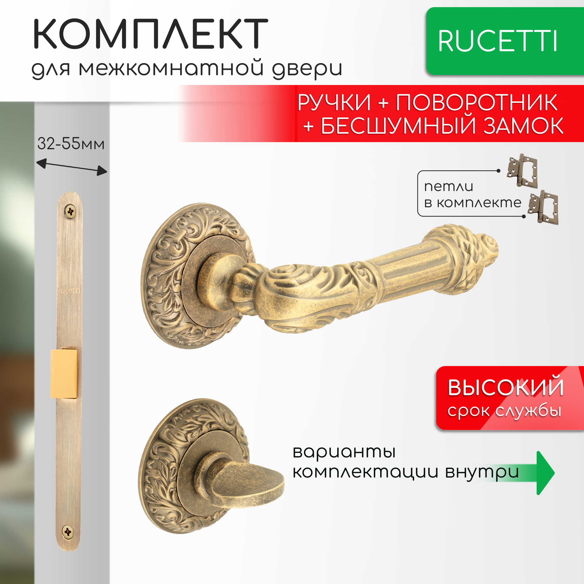 Комплект для межкомнатной двери Rucetti ручки RAP Cl 3 OMB + бесшумный замок / старая матовая бронза