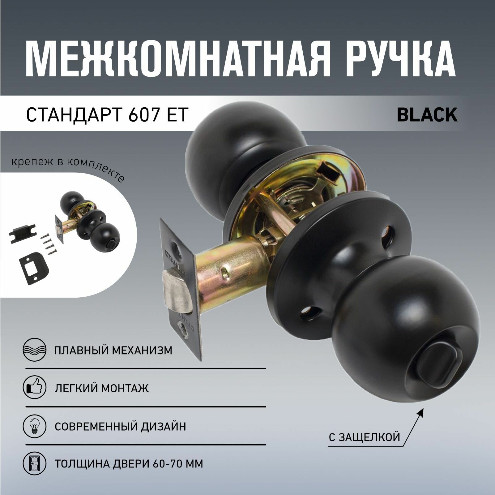 Ручка-защелка дверная межкомнатная с фиксатором (кноб), матовый черный стандарт 607 BK BL интересное: