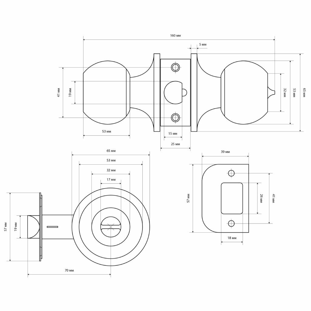 Ручка-защелка дверная межкомнатная (кноб) с ключом и фиксатором стандарт 607 ET AB бронза