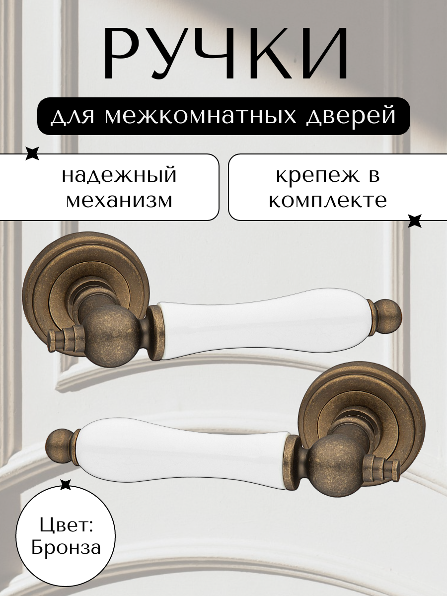 Ручка дверная A-410 ABB, античная бронза, для межкомнатных дверей, комплект, круглая розетка интересное: