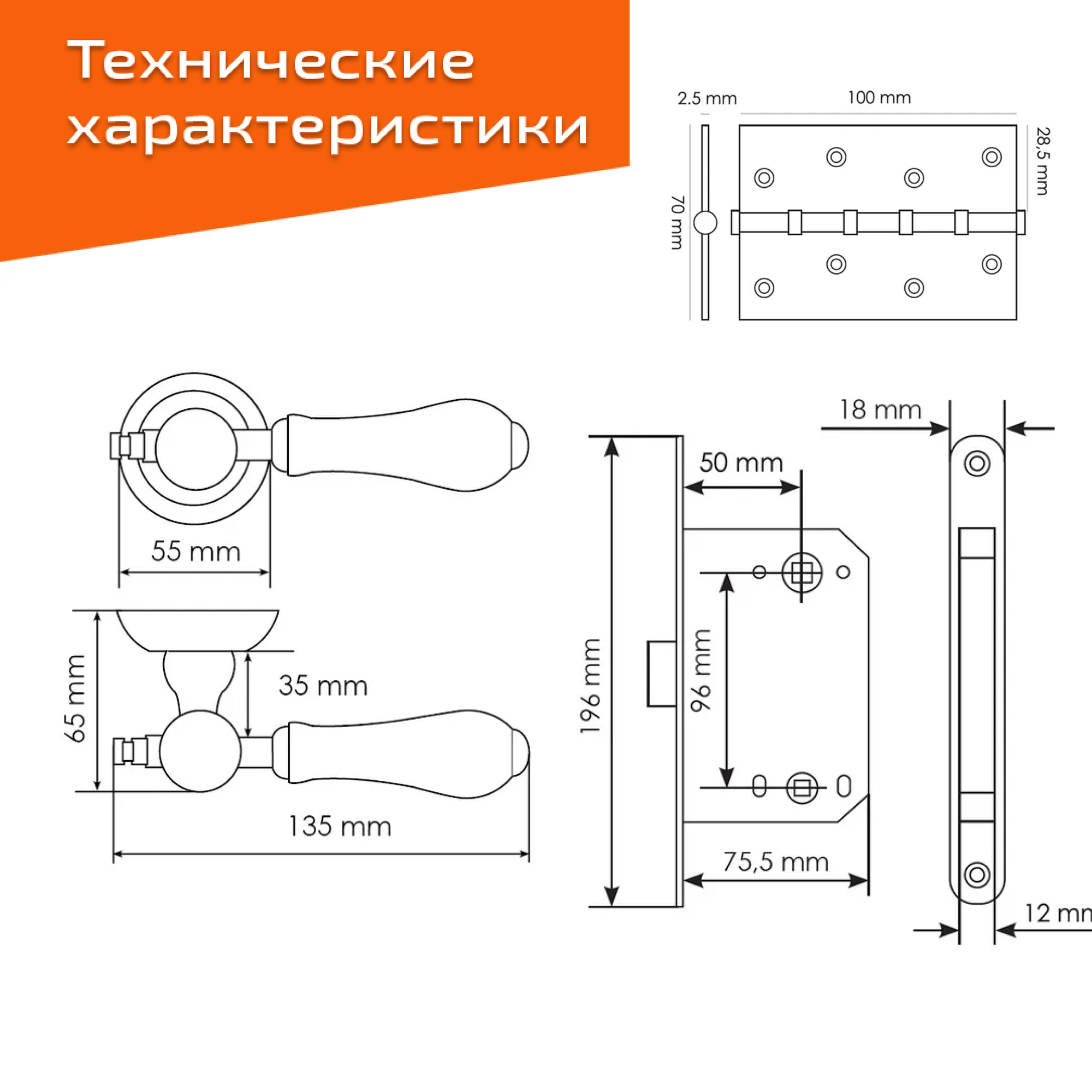 Комплект для двери Morelli ручка MH 42 OMB/CH + поворотник + бесшумный замок + врез. петли/старая матовая бронза-шампань