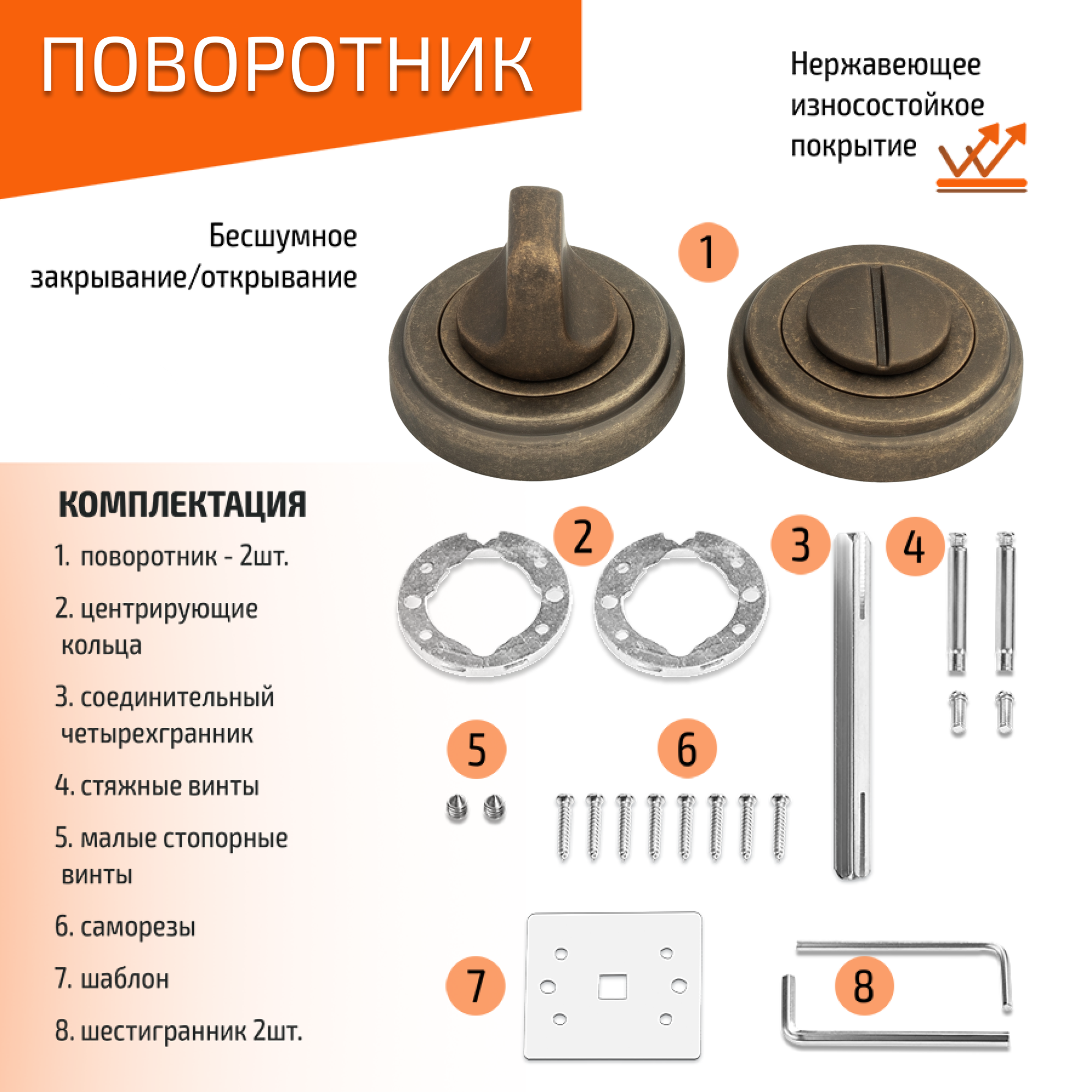 Ручка дверная межкомнатная медь с защелкой и заверткой без ключей комплект