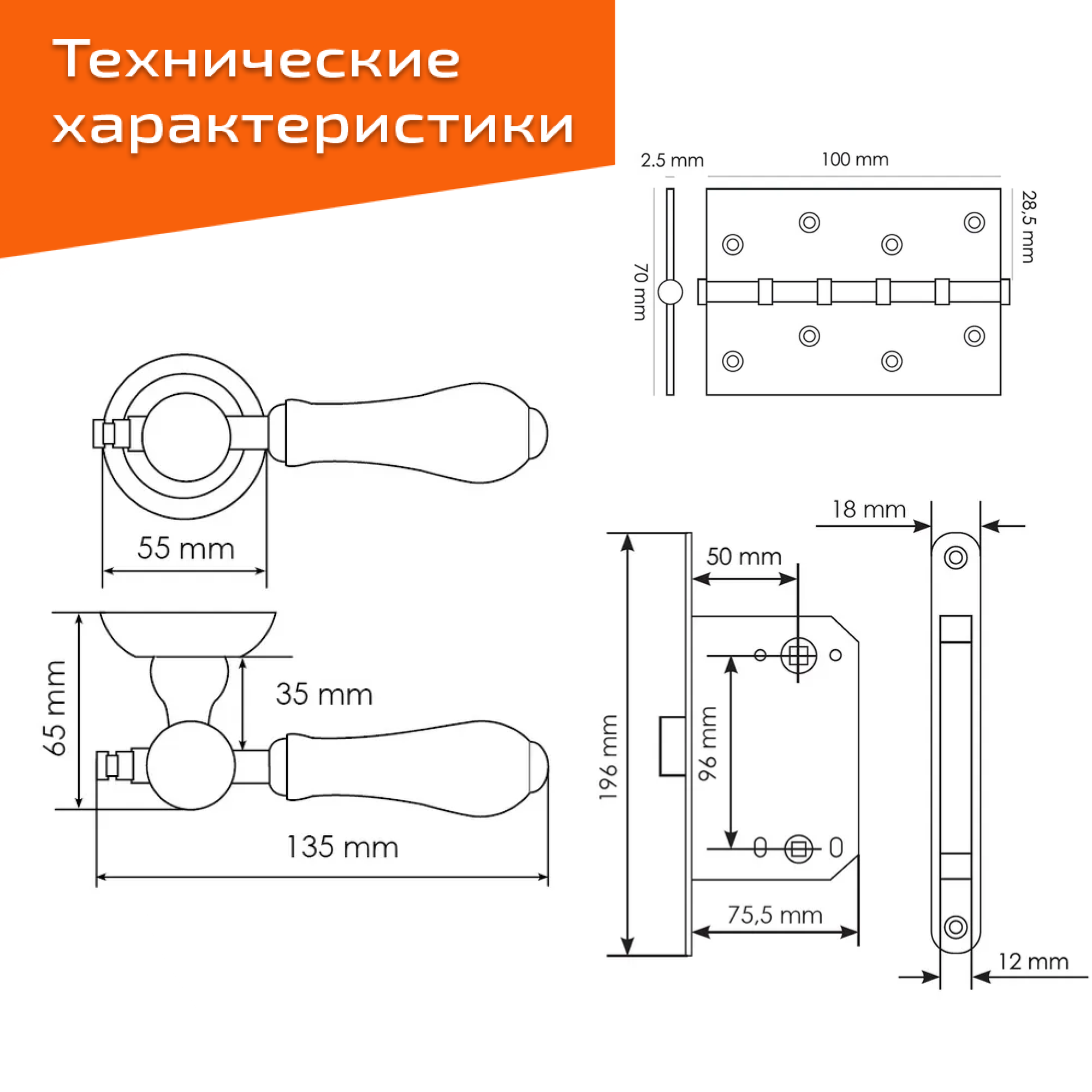 Комплект для двери Morelli ручка MH 42 OMB/CH + поворотник + бесшумный замок + врез. петли/старая матовая бронза-шампань