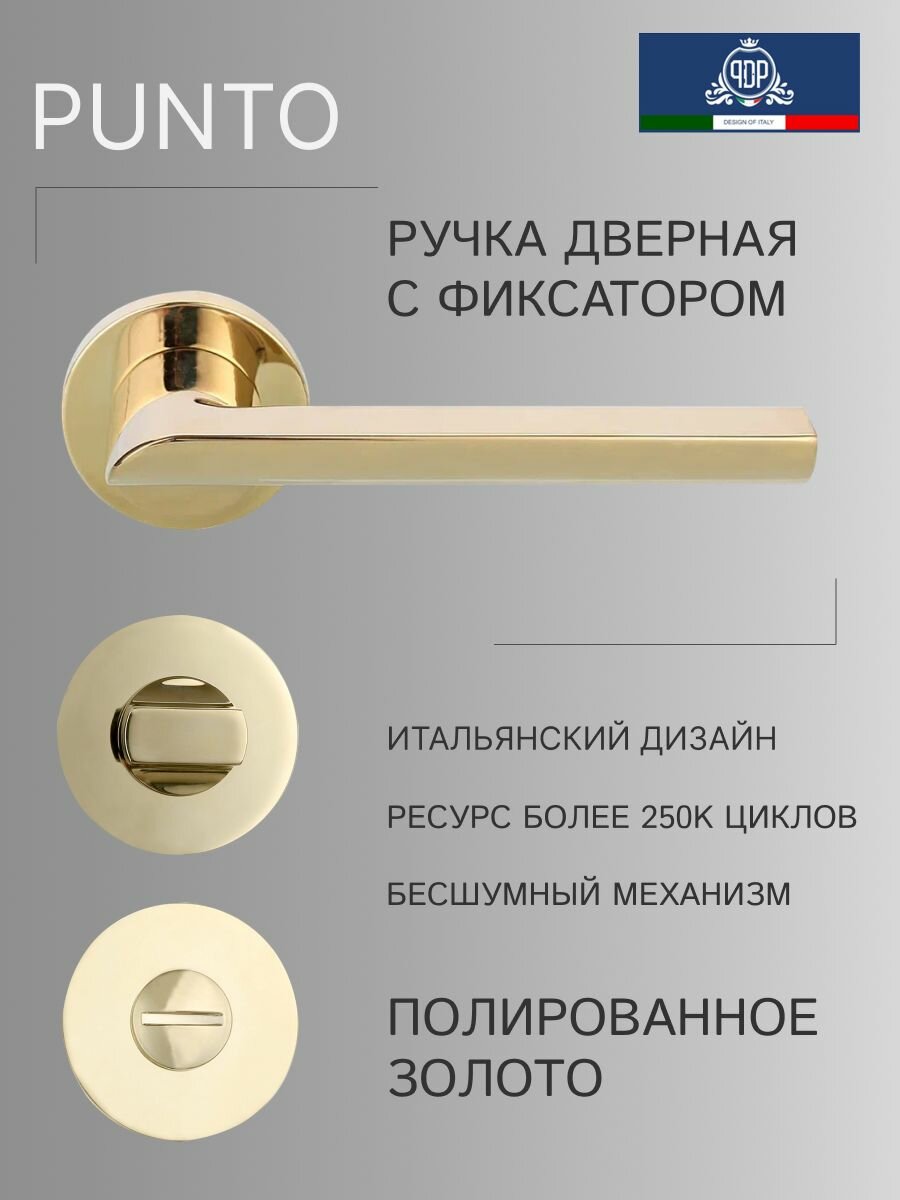 Дверная ручка межкомнатная с фиксатором PDP PUNTO Полированное золото интересное: