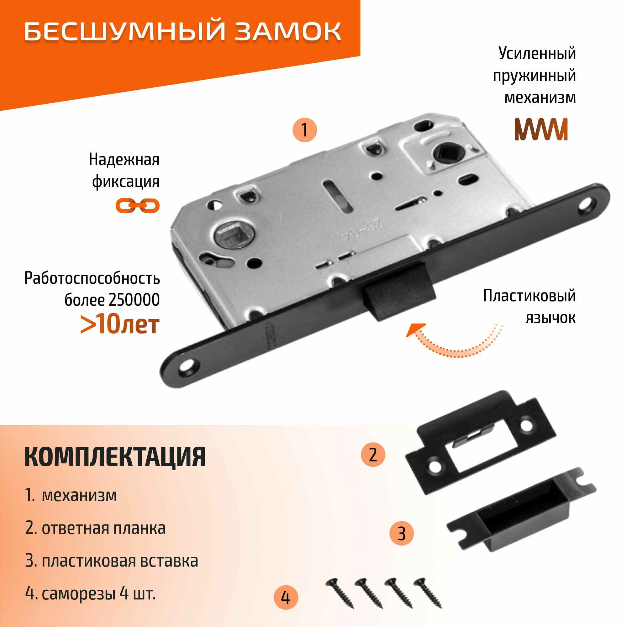 СохранитьКомплект для межкомнатной двери Morelli / Дверная ручка MH 51 S6 BL + поворотник + бесшумный замок + врезные петли / черный матовый интересное:
