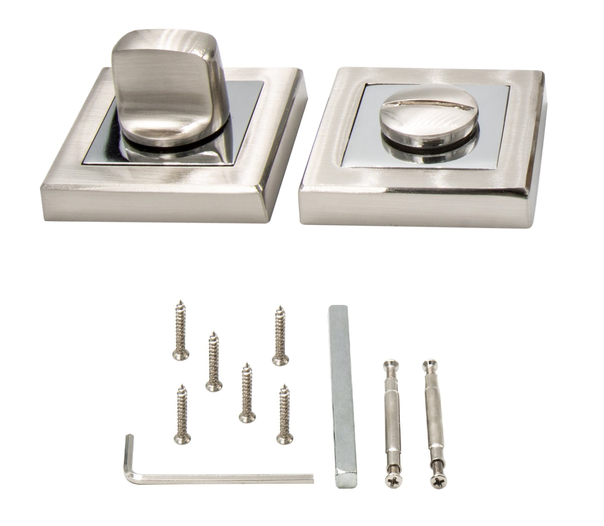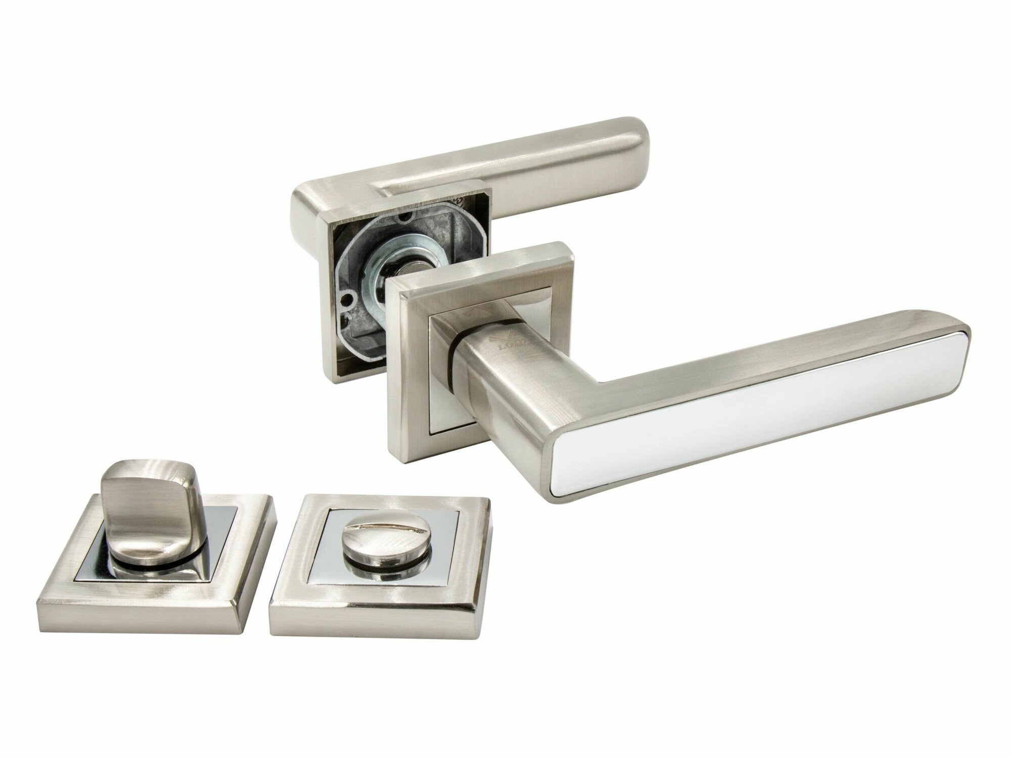 Ручка дверная межкомнатная, поворотная, нажимная Loid 422 SN/WW + завертка квадратная SN/CP матовый хром/хром