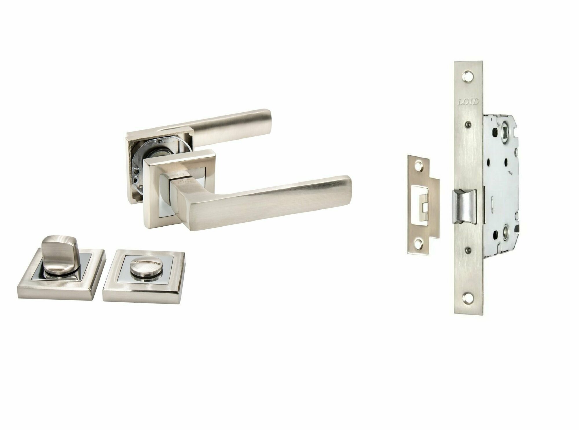 Ручка дверная межкомнатная, поворотная, нажимная Loid 420 SN + замок M-2055 B SN + завертка квадратная SN/CP матовый хром