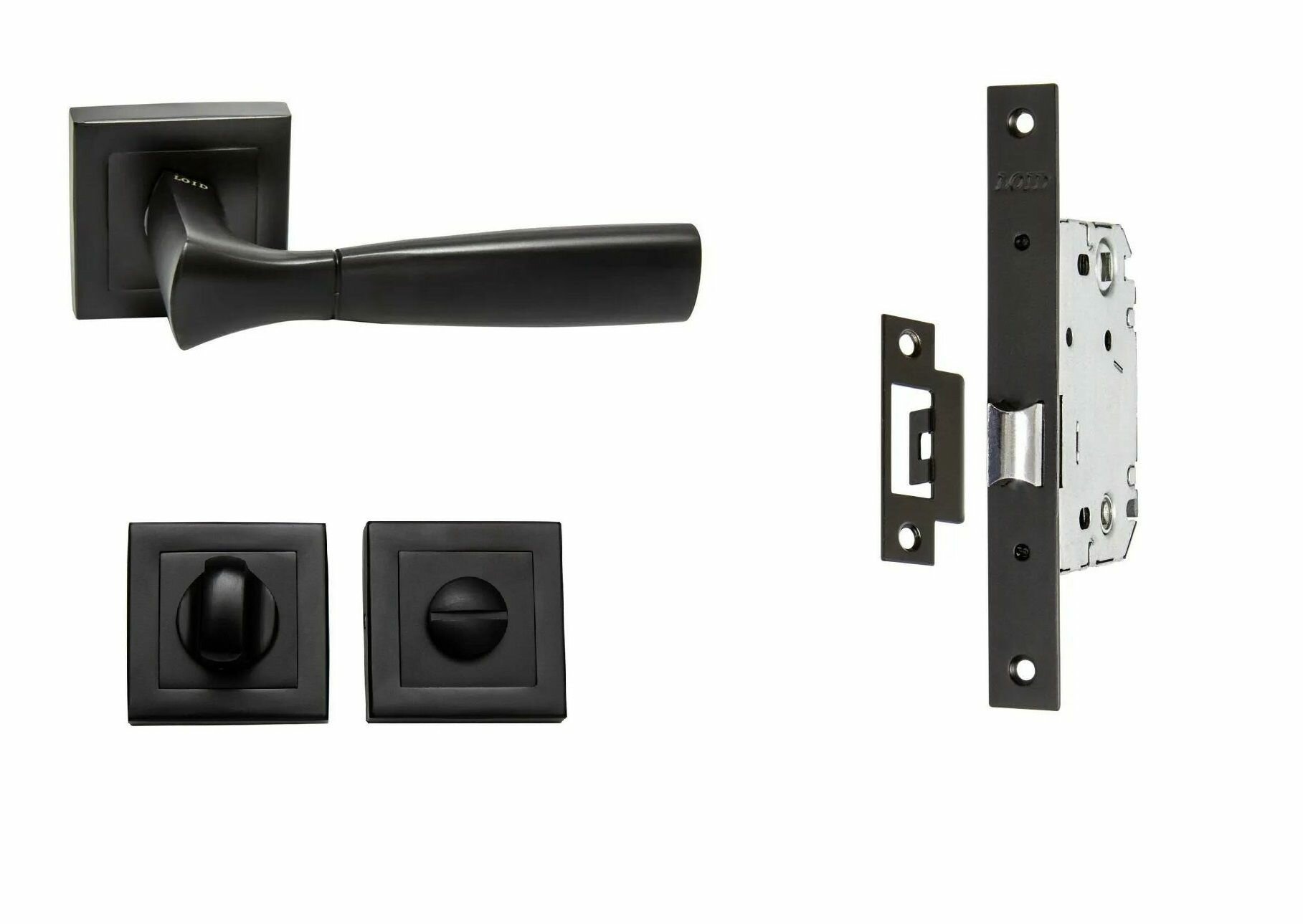 Ручка дверная межкомнатная, Loid 422 BL + замок M-2055 B BL + завертка квадратная BL черный комплект