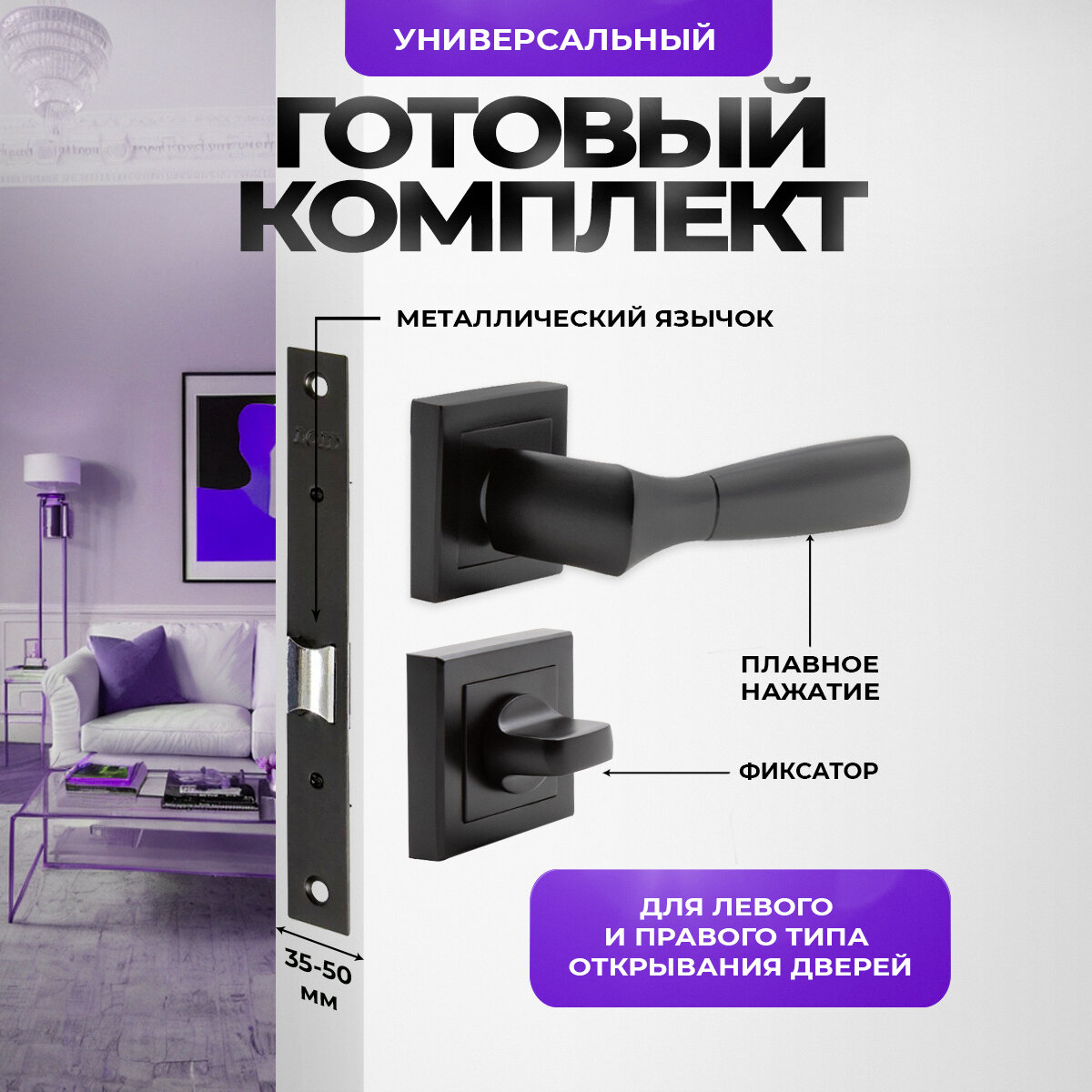 Ручка дверная межкомнатная, Loid 435 BL + замок M-2055 B BL + завертка квадратная BL черный комплект